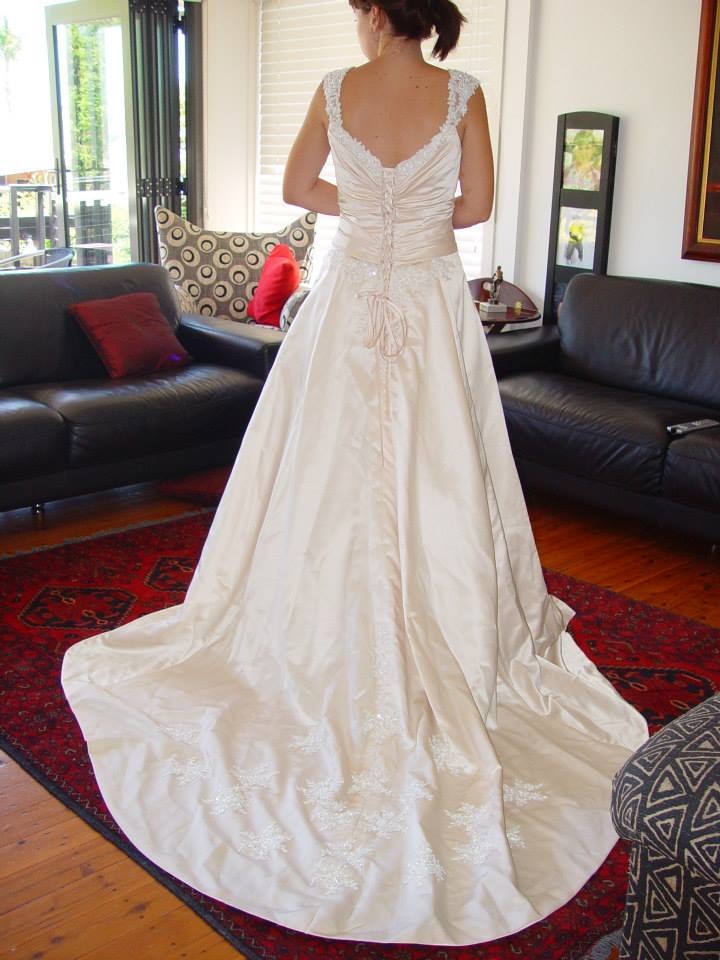 The dress is available in size 10 and is suitable for any regular size 8-12 as it has an adjustable lace up back.