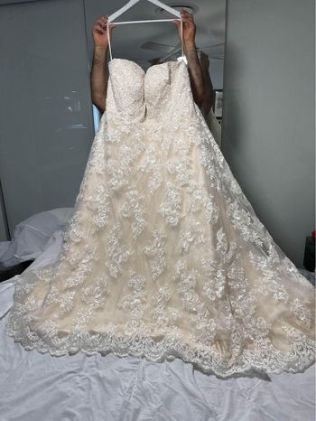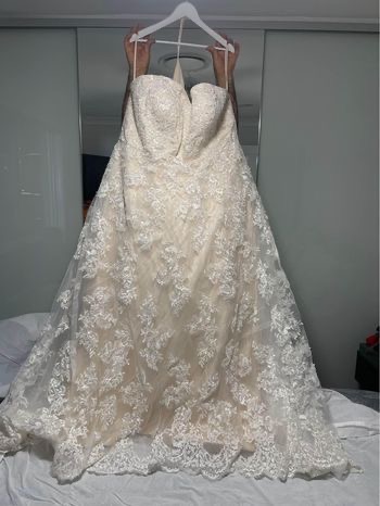 Brand new never worn wedding dress size 28, was purchased for over $3000 for a wedding that got canceled. I am selling for $1500 ONO. Please note that the photo with the bling is what the dress looks like on display, the dress does not have the bling sash as I preferred it without. If you have any questions please message or call me 0416852970