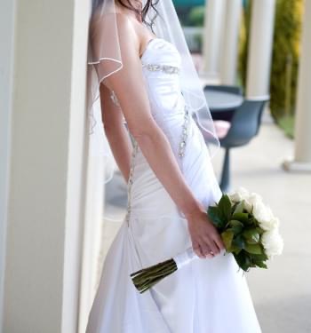 Strapless Diamond White Maggie Sottero Wedding Dress with sweetheart neckline and A-frame.