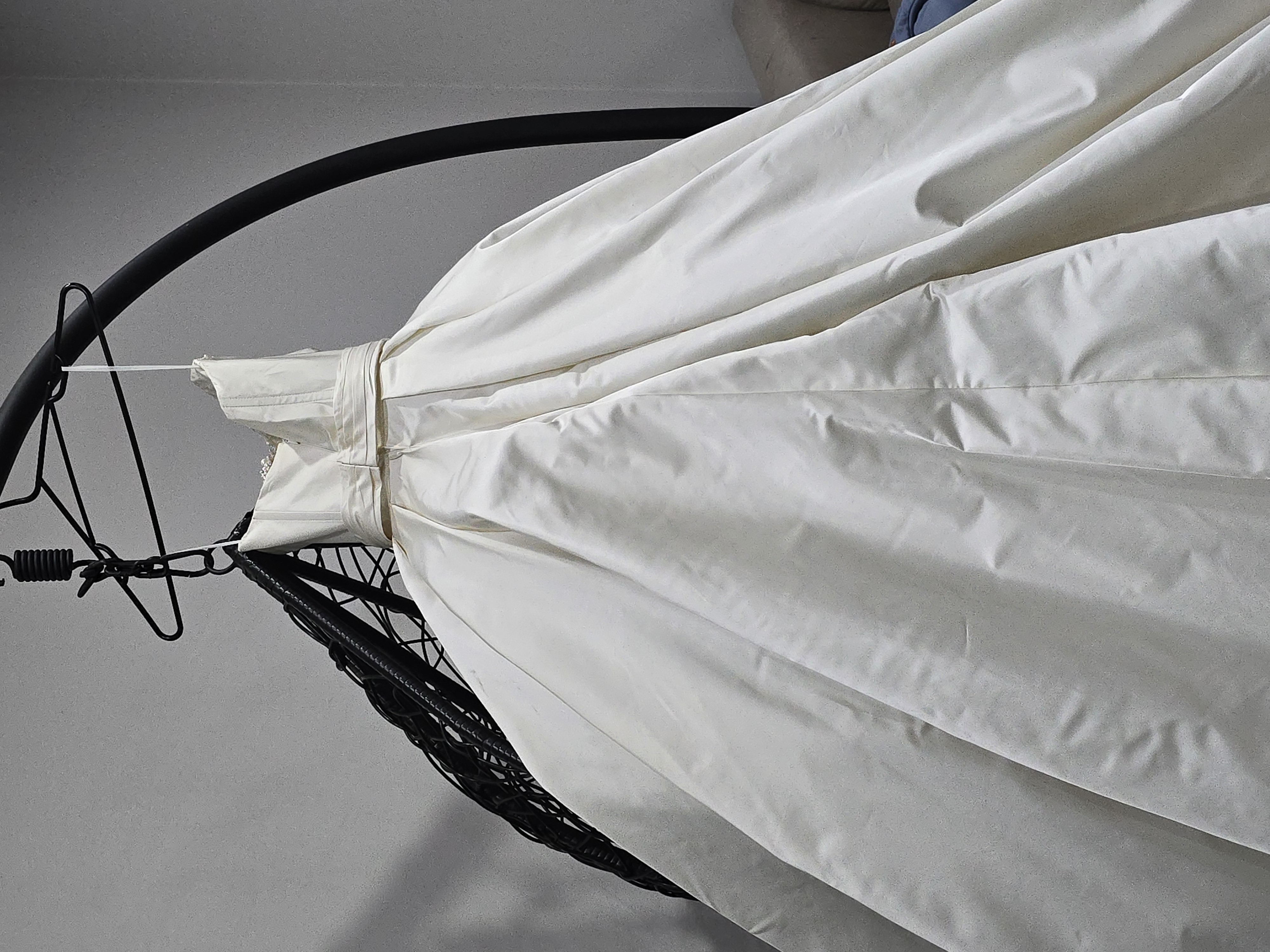 The dress is brand new, never worn, and tailored to fit perfectly. Its off-white shade adds a classic and elegant touch.