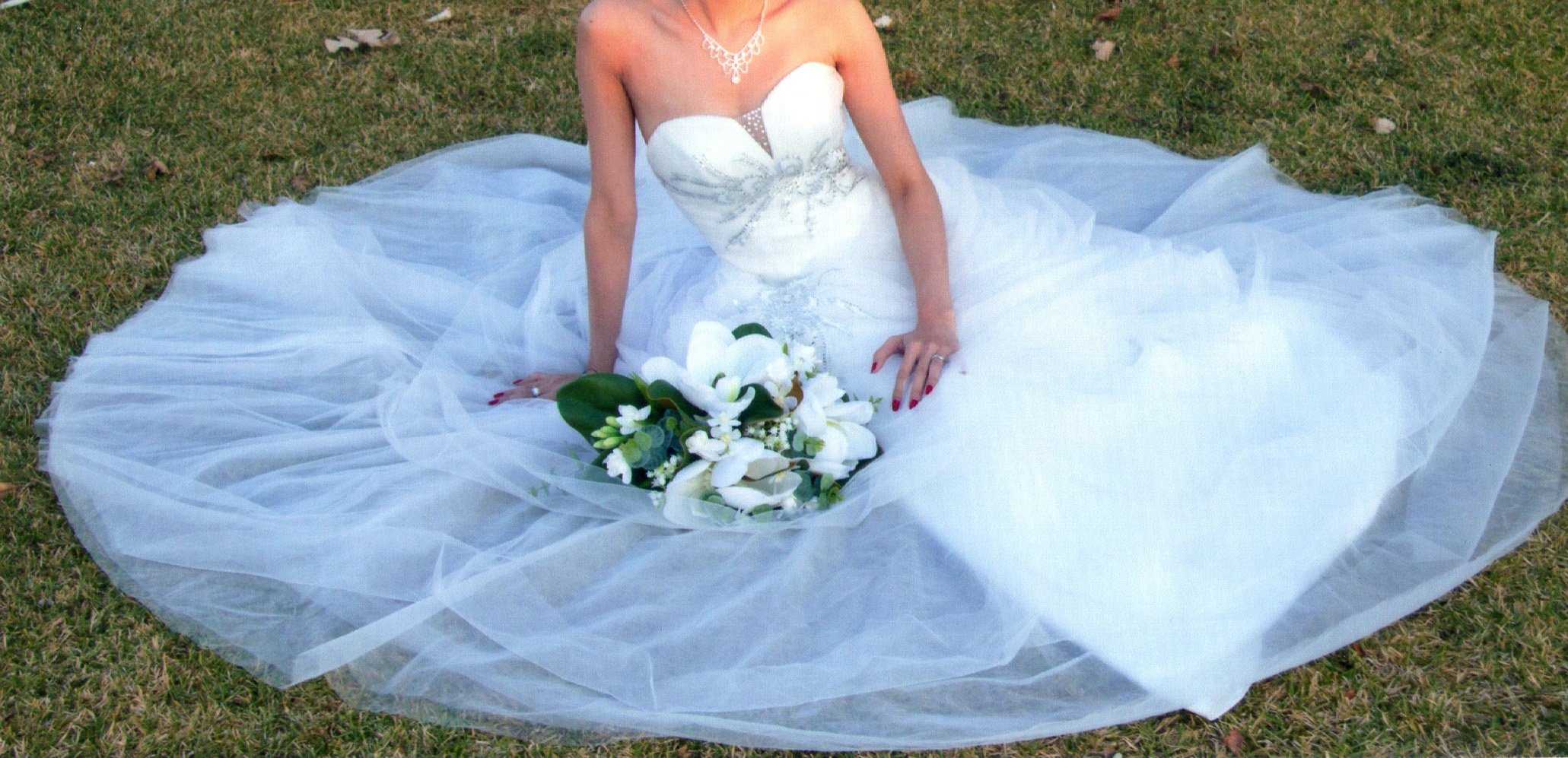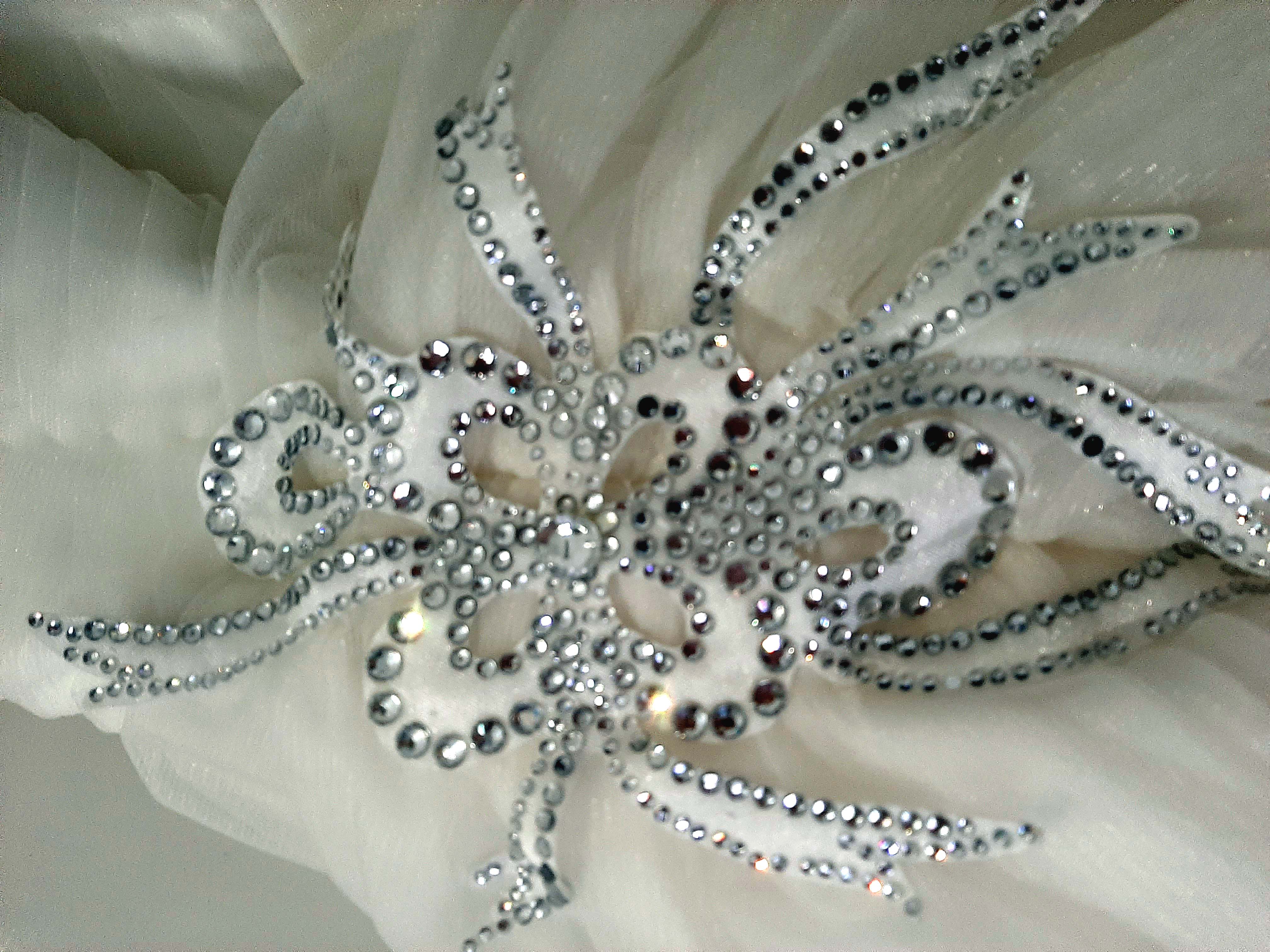 Beautiful diamante features on layers of tulle over meters of satin underlay.