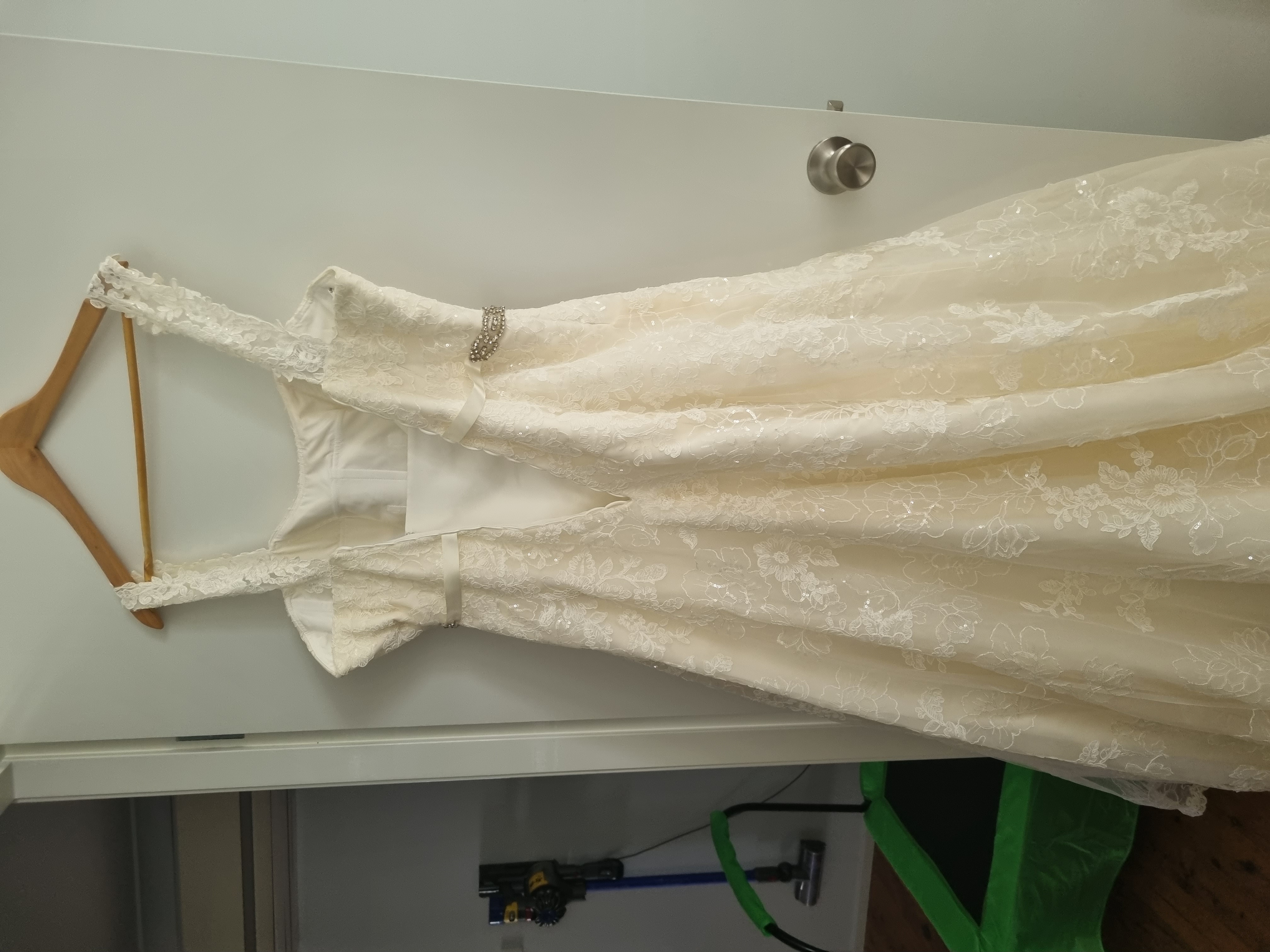 For sale is a beautiful Ivory wedding dress which was bought in 2017 and is a size 20. It has had alterations for the backing of the dress as well as two lace straps and diamonte belt. Comes with a free veil. RRP was $3000, selling for $1,500 ONO. Will require a ribbon for the back as ribbon has been misplaced. Was also dry cleaned, but has slight mudstains at the bottom of dress (barely visible). Such a beautiful dress that deserves a second life! Grab a bargain!
