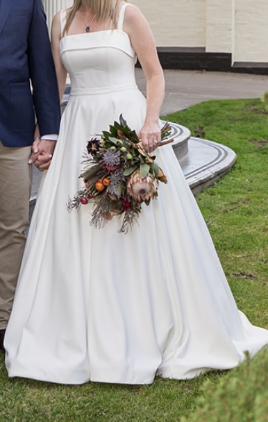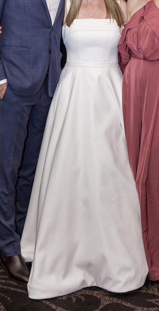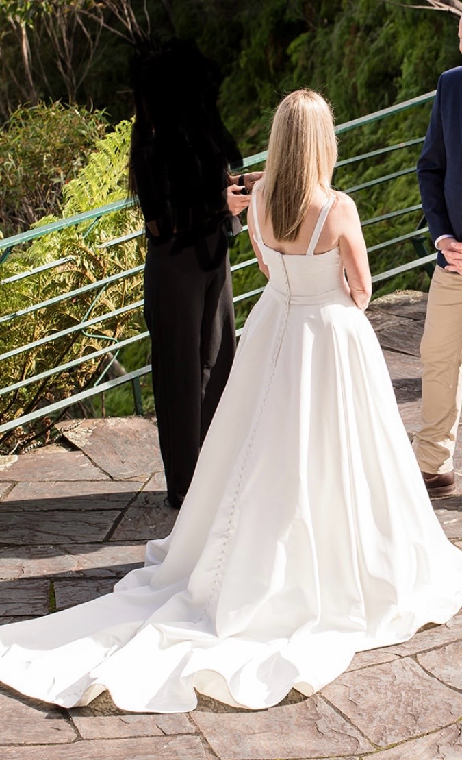 Elegant princess style wedding dress. Glamorous yet simple design. Has straps but can also be strapless. Worn once for our wedding which was held in April this year. Has been professionally dry cleaned. Would fit someone who around size 8 or 10.