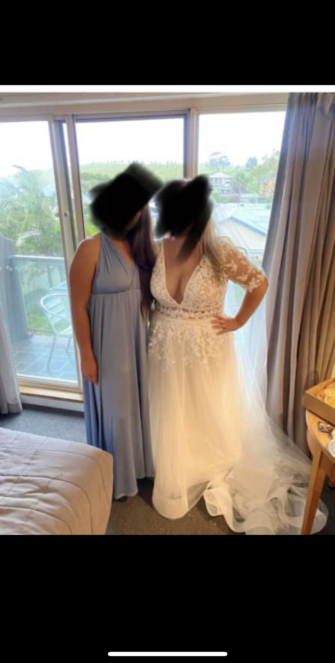 I bought this dress new from “brides in love” Sydney bridal store and wore it once at my wedding in March 2022. I’ve recently had the dress dry cleaned. I’m very happy to send all receipts of the dress purchase, alterations and the dry cleaning bill.