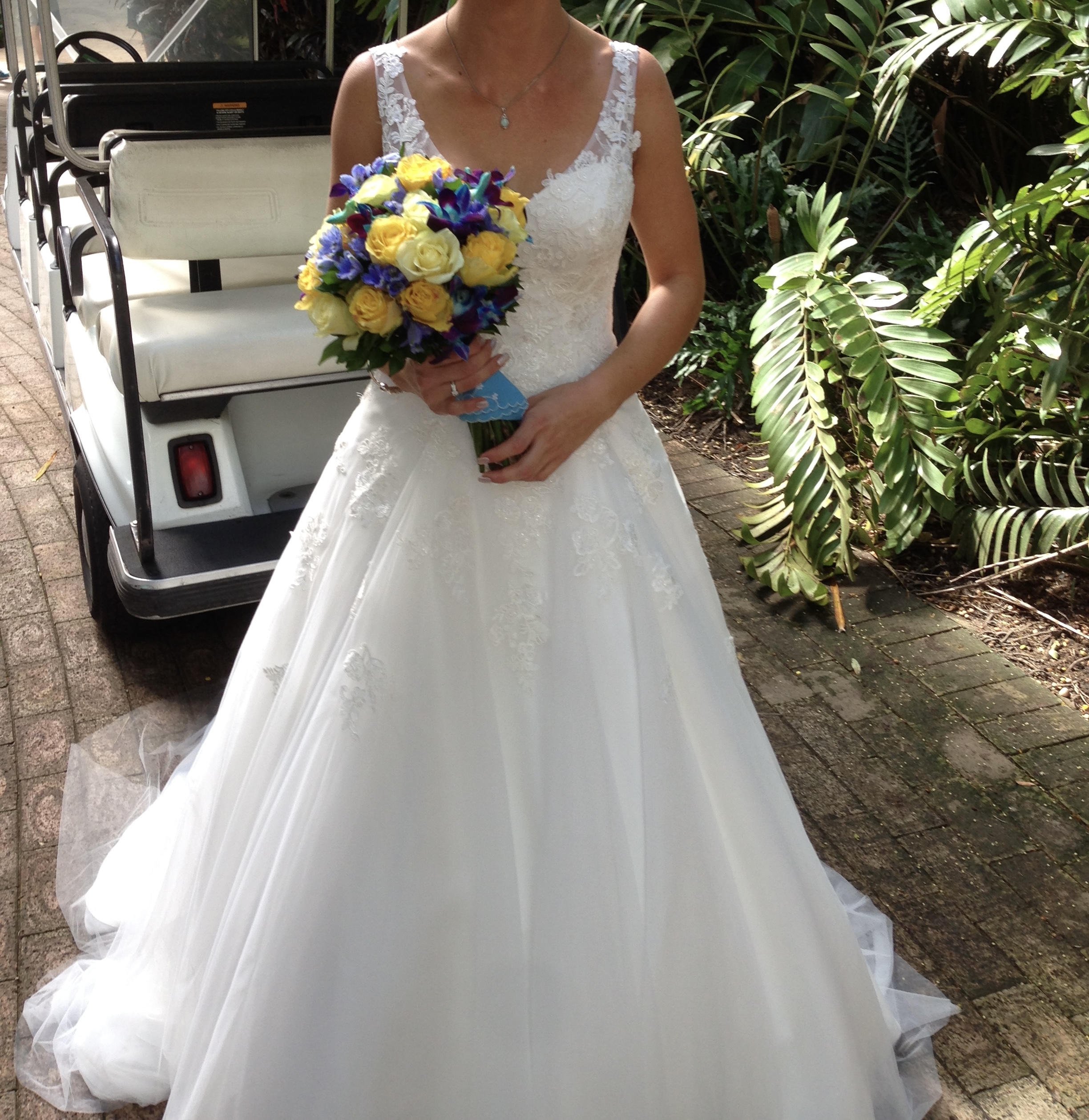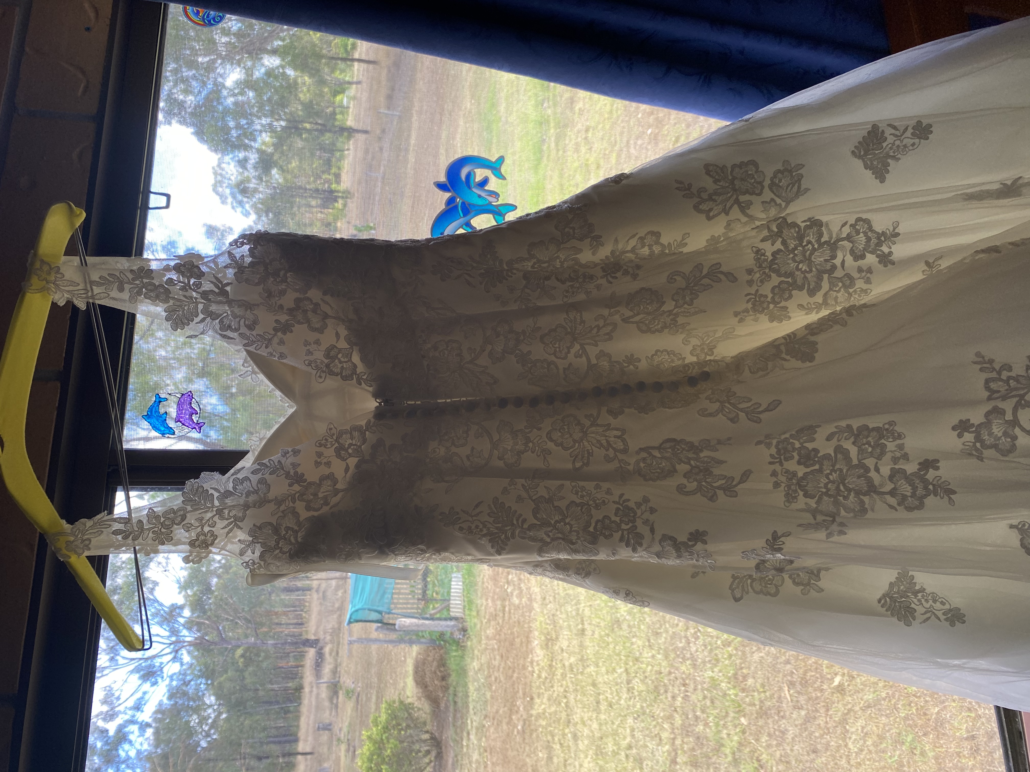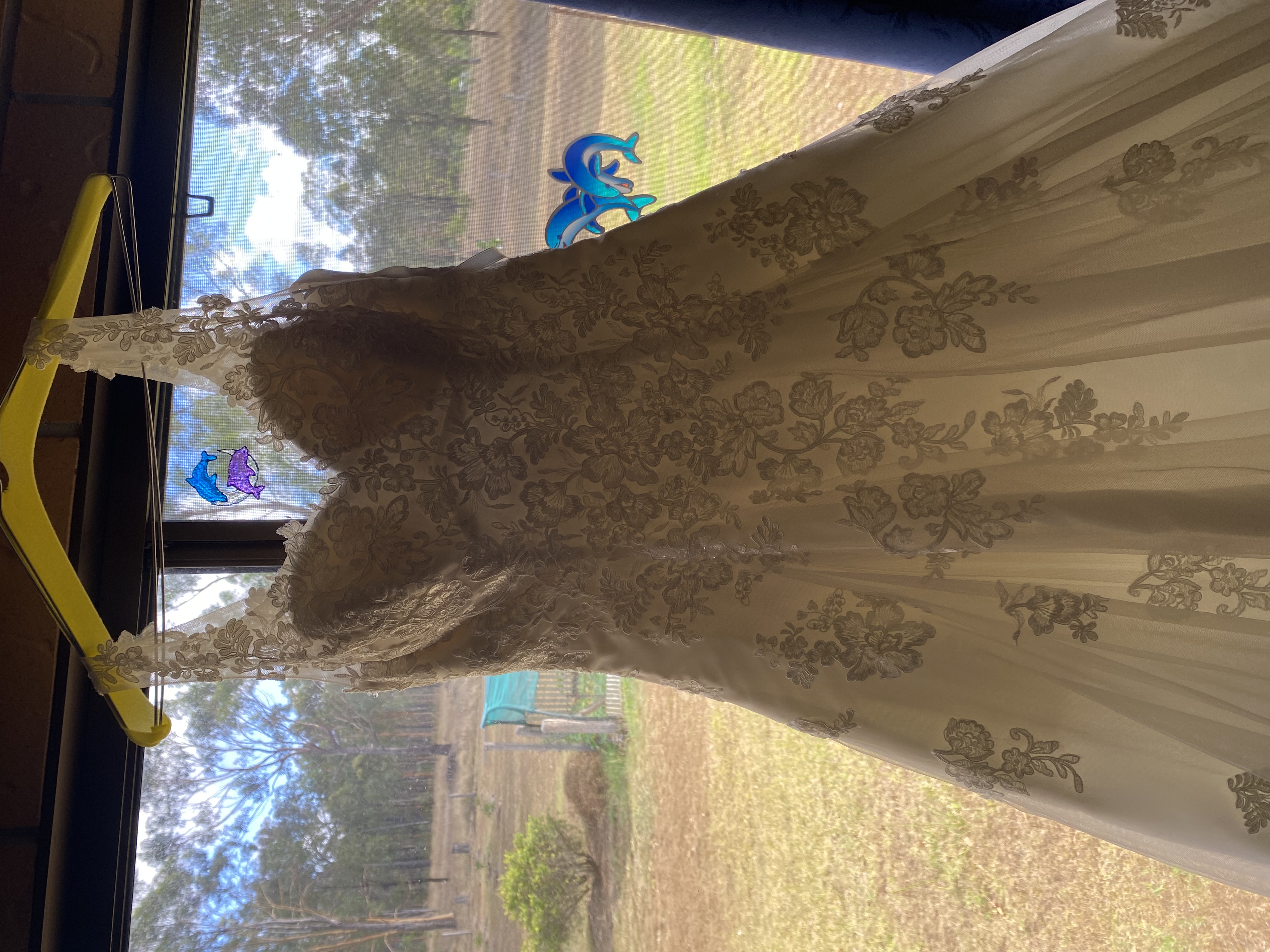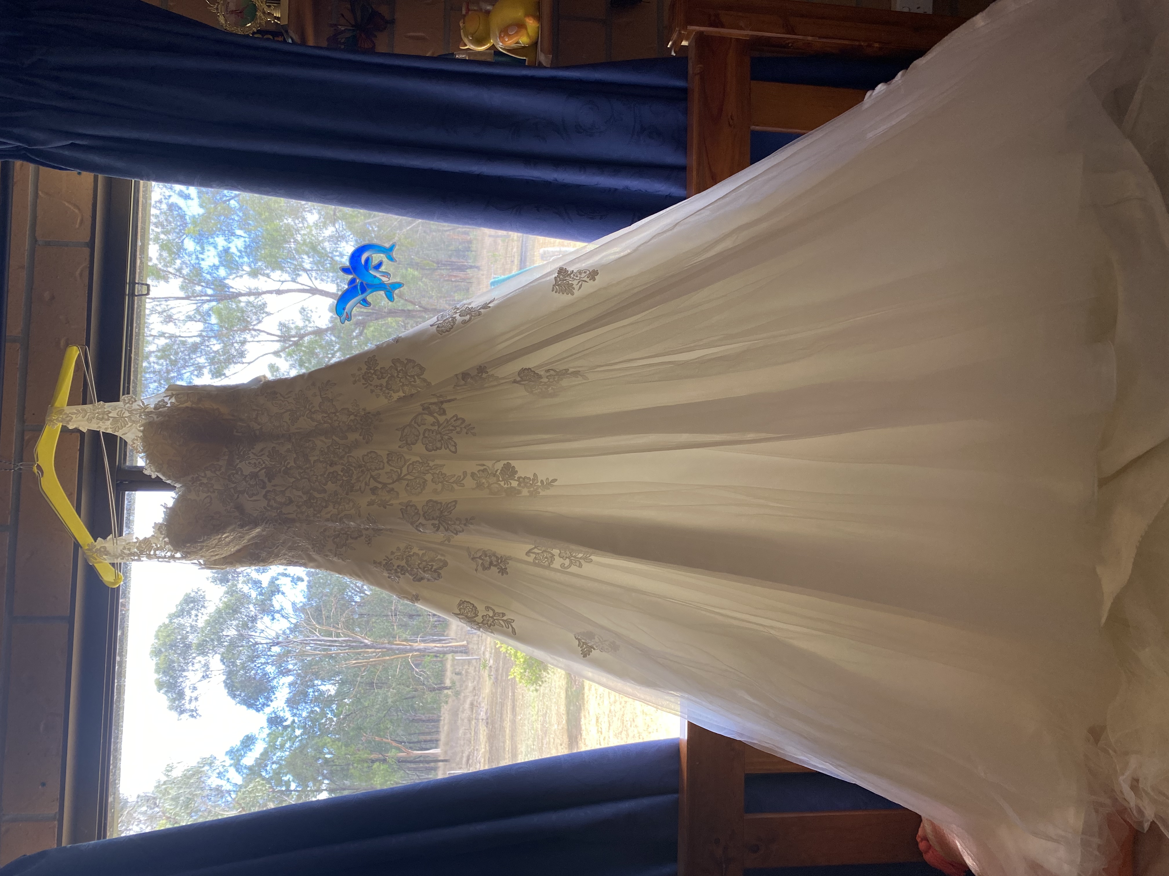 White wedding dress, skirt is tulle with a flower pattern through the top layer. Size 8 brought brand new. Worn once, has been dry cleaned and kept in the cupboard. Alternations include the dress being hemmed, everything else original design. Asking $650 + postage if required.
