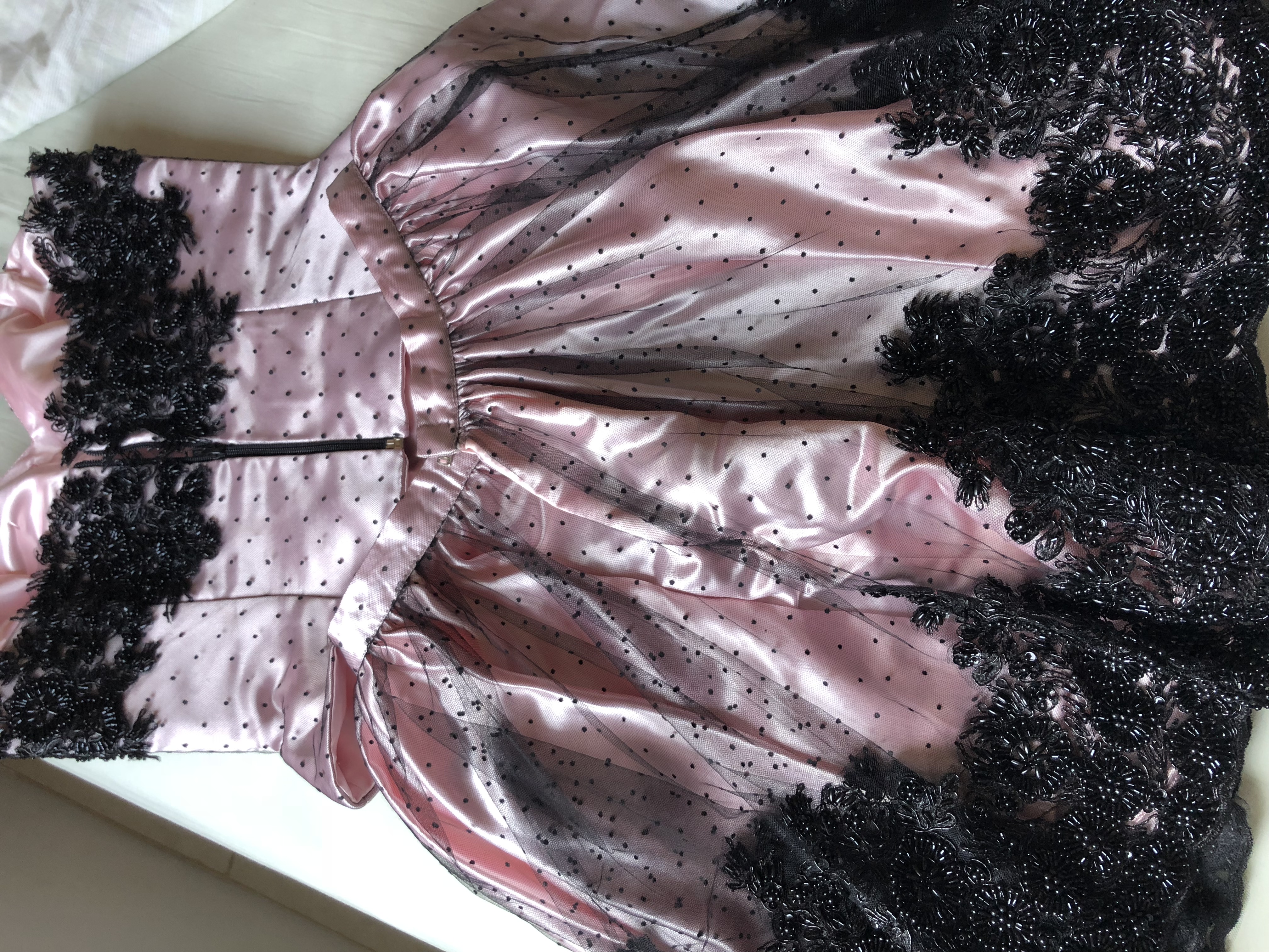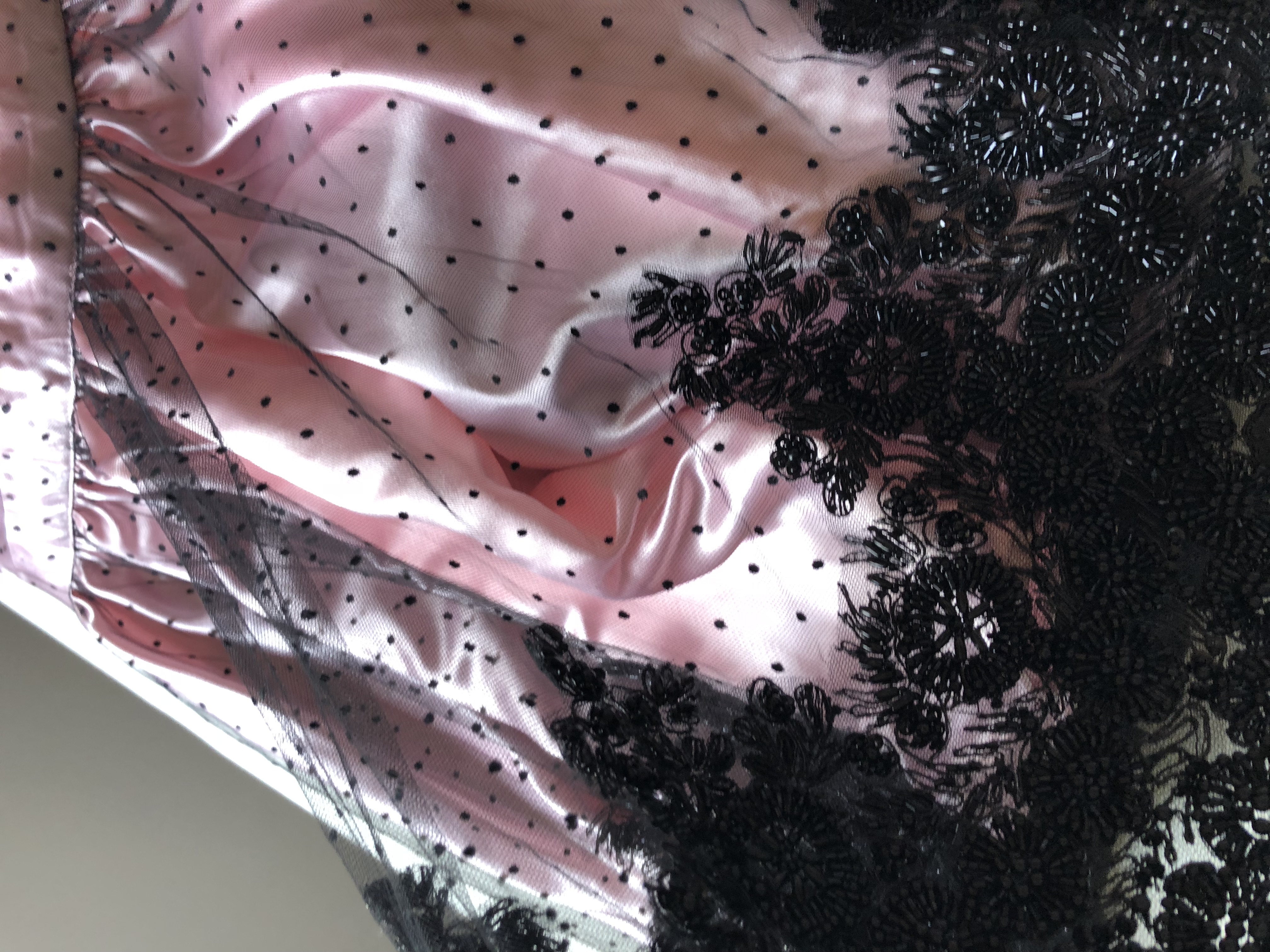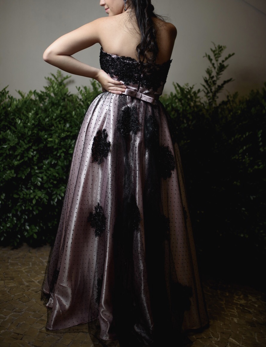 Vestido usado APENAS 1 vez, em 2017, por debutante. Em ótimo estado de conservação, NOVÍSSIMO!! São 3 peças: 1) a saia longa, 2) a saia curta e 3) o corpete em decote coração. Adequado para qualquer ocasião chique. Vestido ESTRUTURADO, com tule para armação,forro, tafetá dupla face rosa, tule preto de poá importado e renda preta importada. Veste lindo no corpo!!