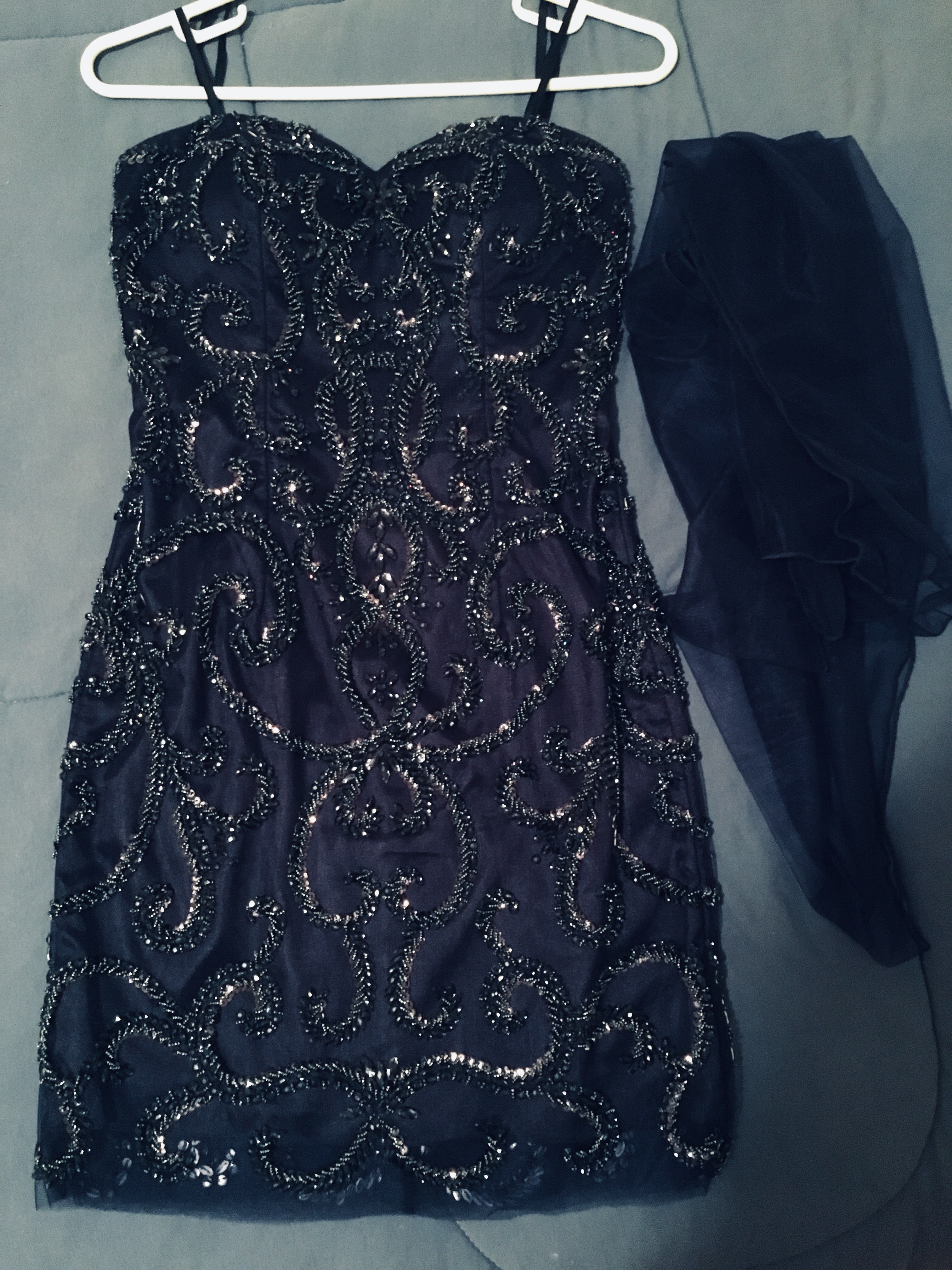 Lindo vestido de festa azul curto, inteiro bordado, usado apenas UMA vez (na ocasião da foto).