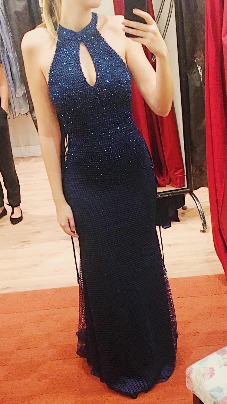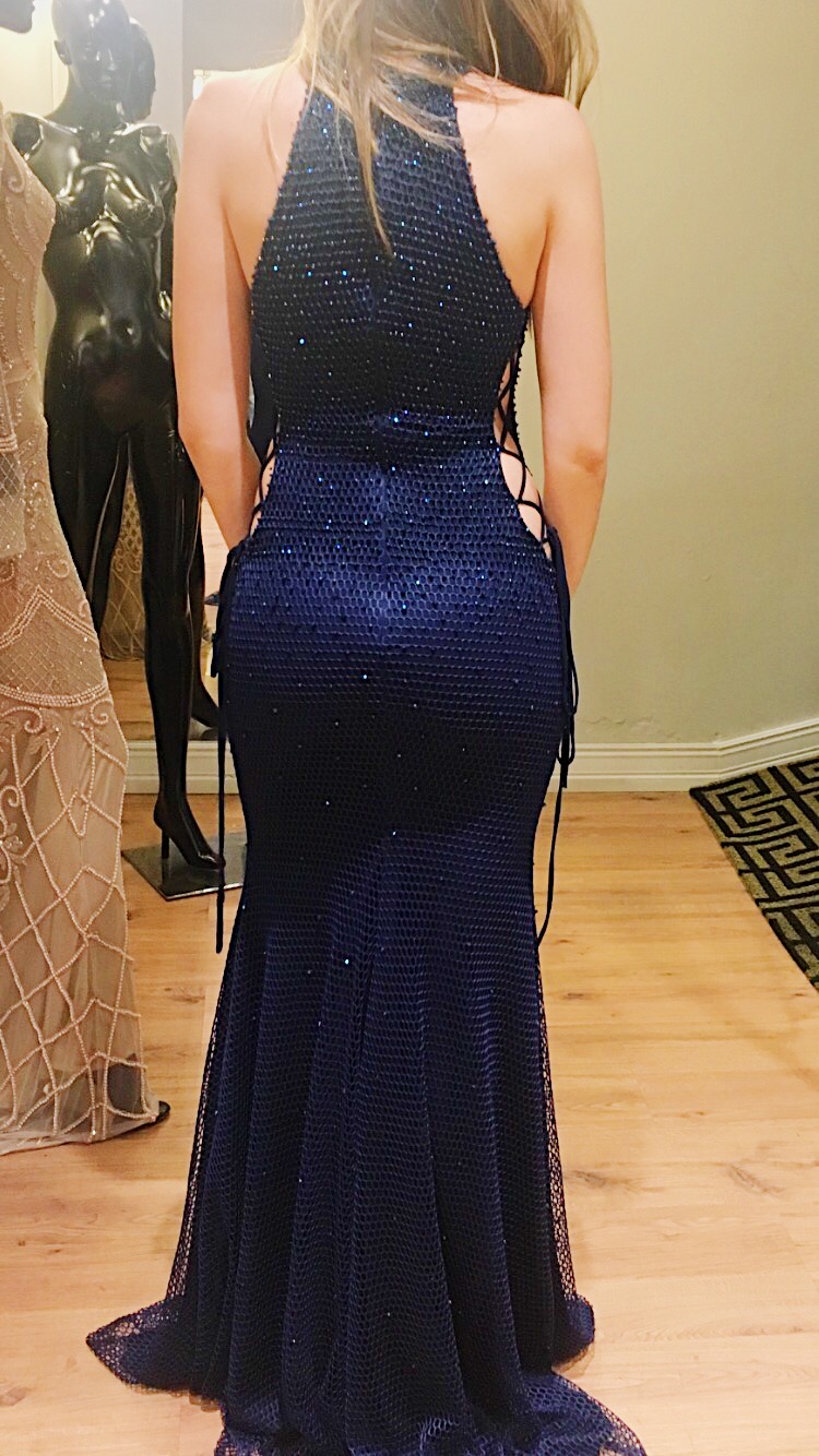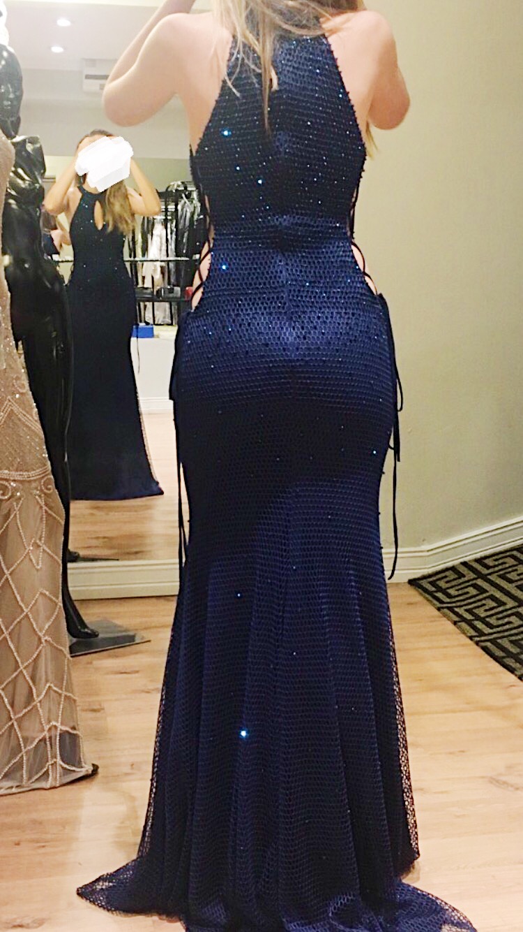 Vestido azul marinho longo da marca Jovani NY. Adquirido na loja Ana Vargas de Itajaí/SC.