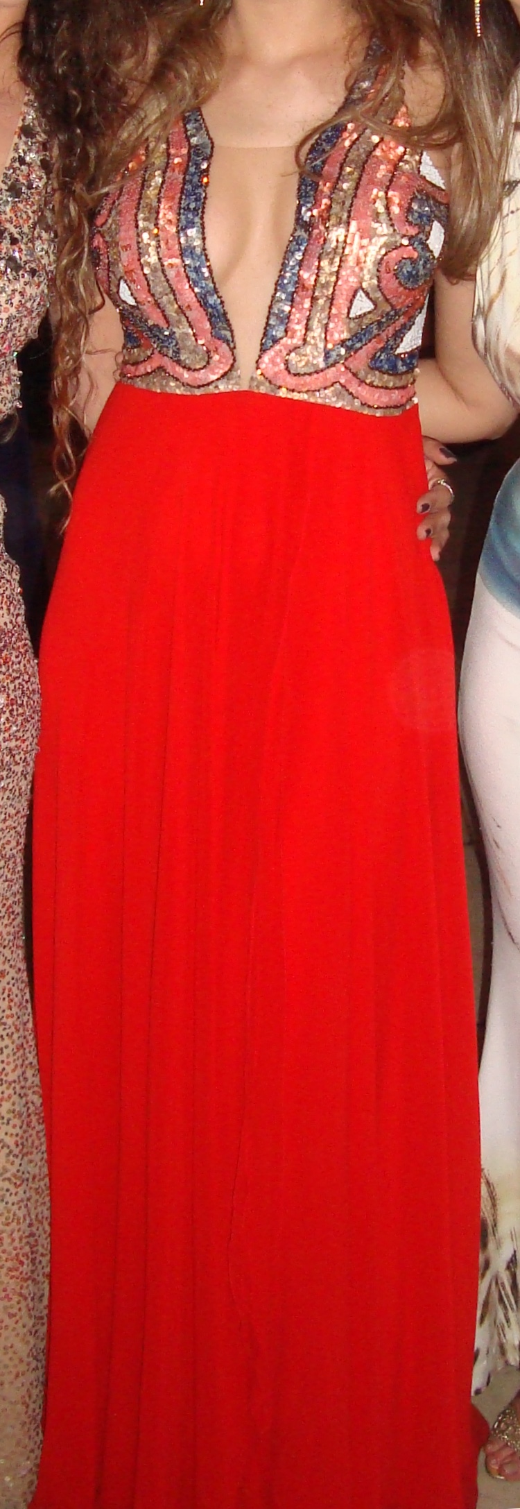 Vestido fino longo em crepe de seda. Bordado exclusivo em tule e as costas toda em tule. Vestido ideal para madrinhas e formaturas. Impecável. Usado uma única vez. Comprado na loja Pettersen em Belo Horizonte.