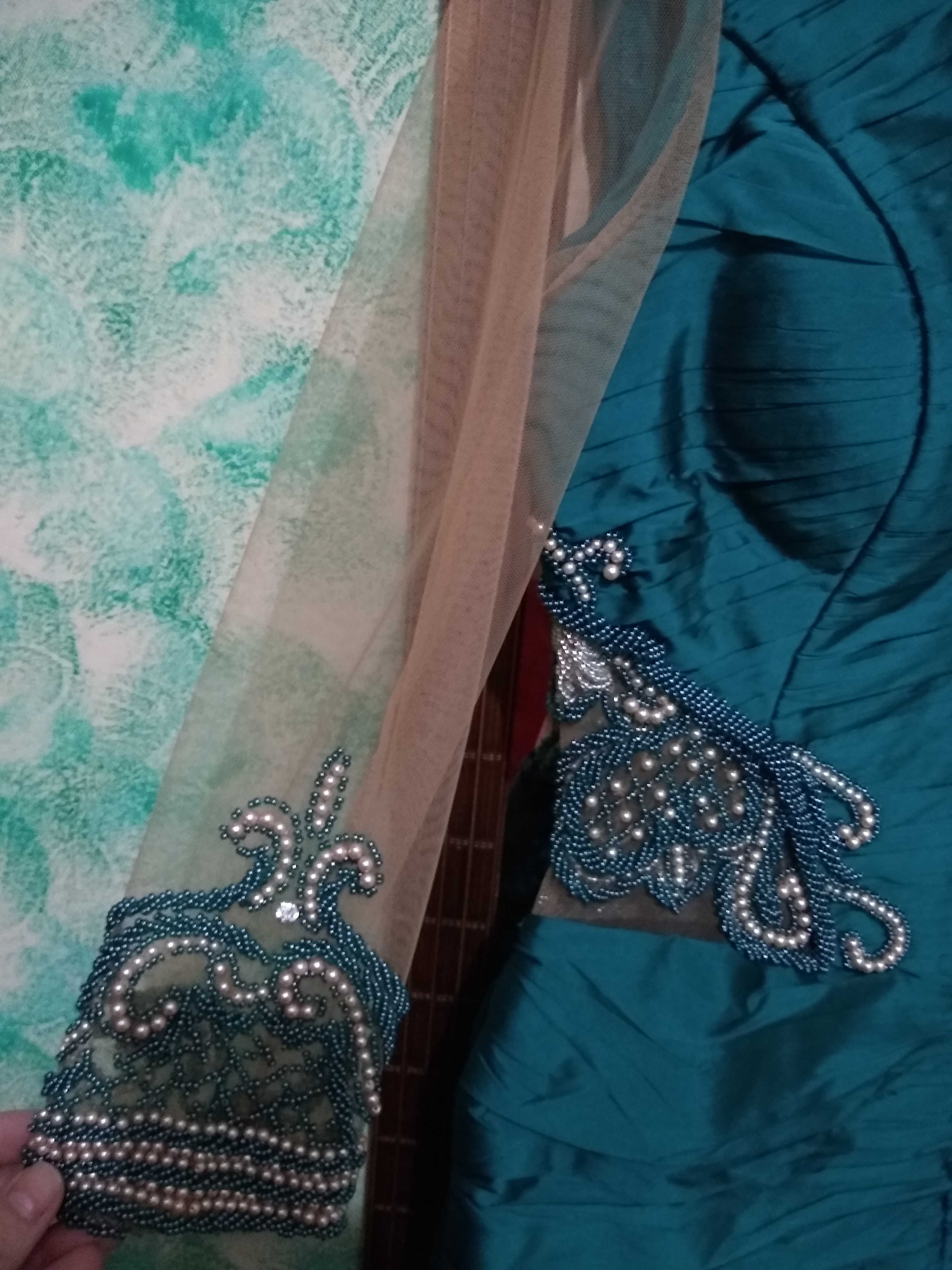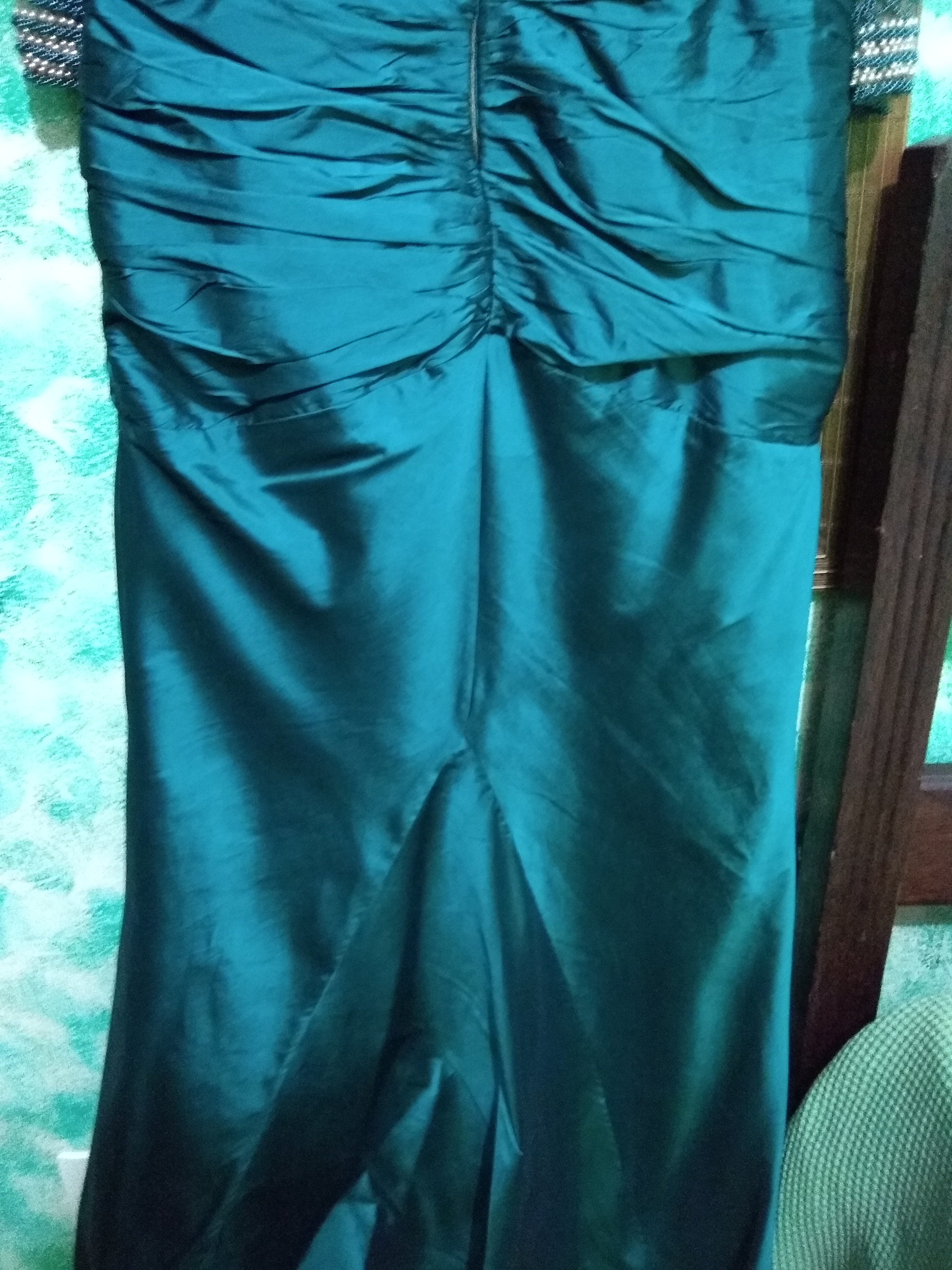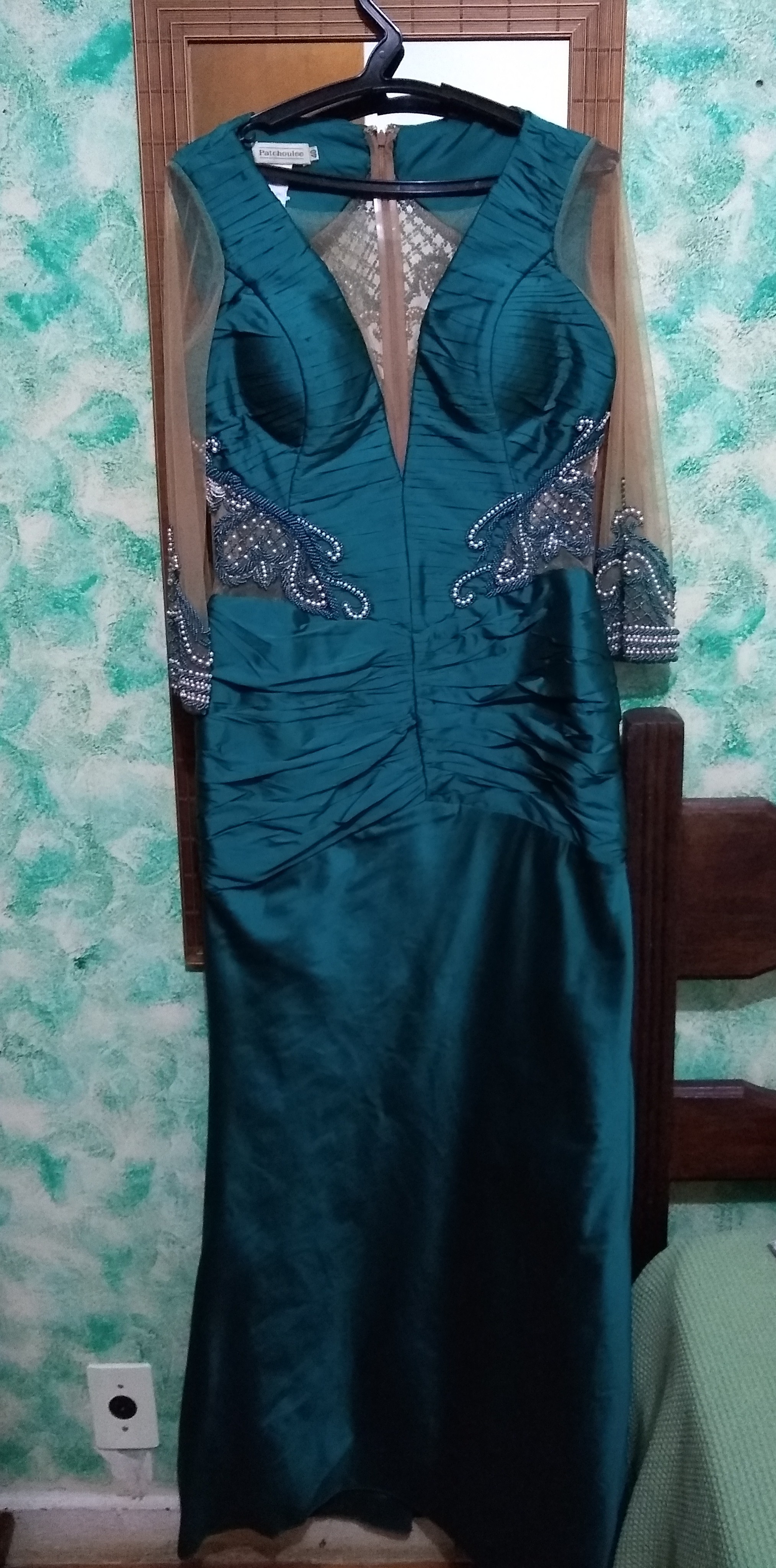 Vestido de Festa longo na cor verde. Tecido tafetá com tule bordado em pedrarias.