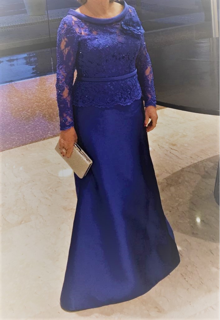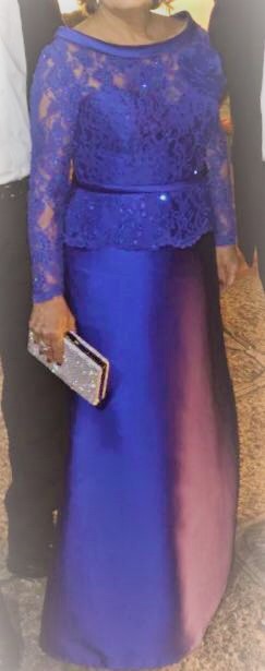 Vestido PRONOIVAS, Azul Royal , em zibellini com renda francesa, a blusa bordada à mão da mesma cor do vestido.Perfeito estado , usado uma única vez por mãe de noiva, acompanha sapato prata com pedras prata salto 9 com plataforma , super confortável tamanho 35.