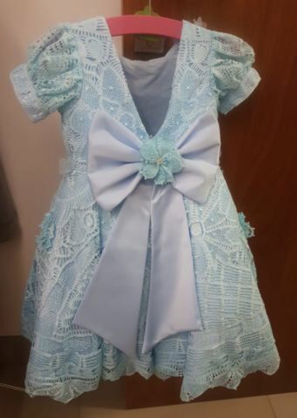 Vestido Mãe e Filha em Renda Renascença feito a mão na cor azul bebê. Vestido mãe veste tamanho 38 a 42 e vestido filha veste tamanho2 a 3 anos. Vestido mãe acompanha aplique de cabelo em renda e vestido filha acompanha laço de cabelo e calcinha. Vestido usado uma única vez, perfeito para casamento e aniversário. Vestido com modelagem impecável.