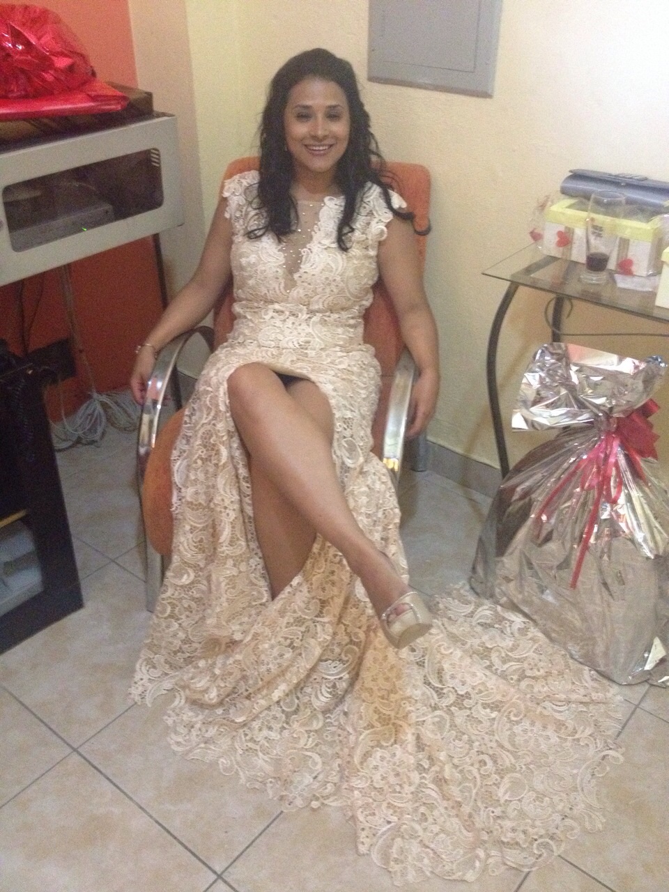 Vestido todo em renda com vestido por dendro de cetim, tem sapato se quiser q acompanha vestido número 35.