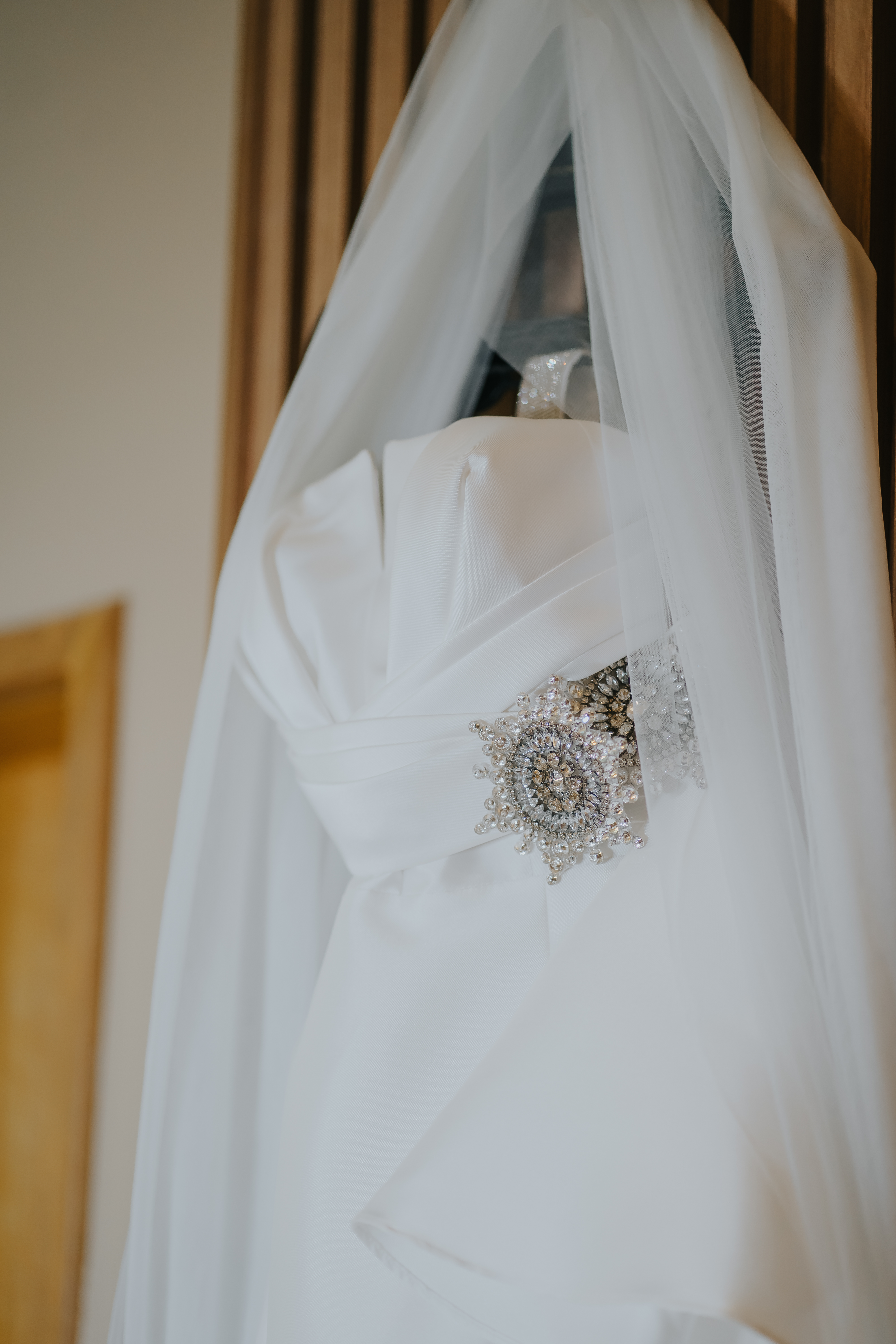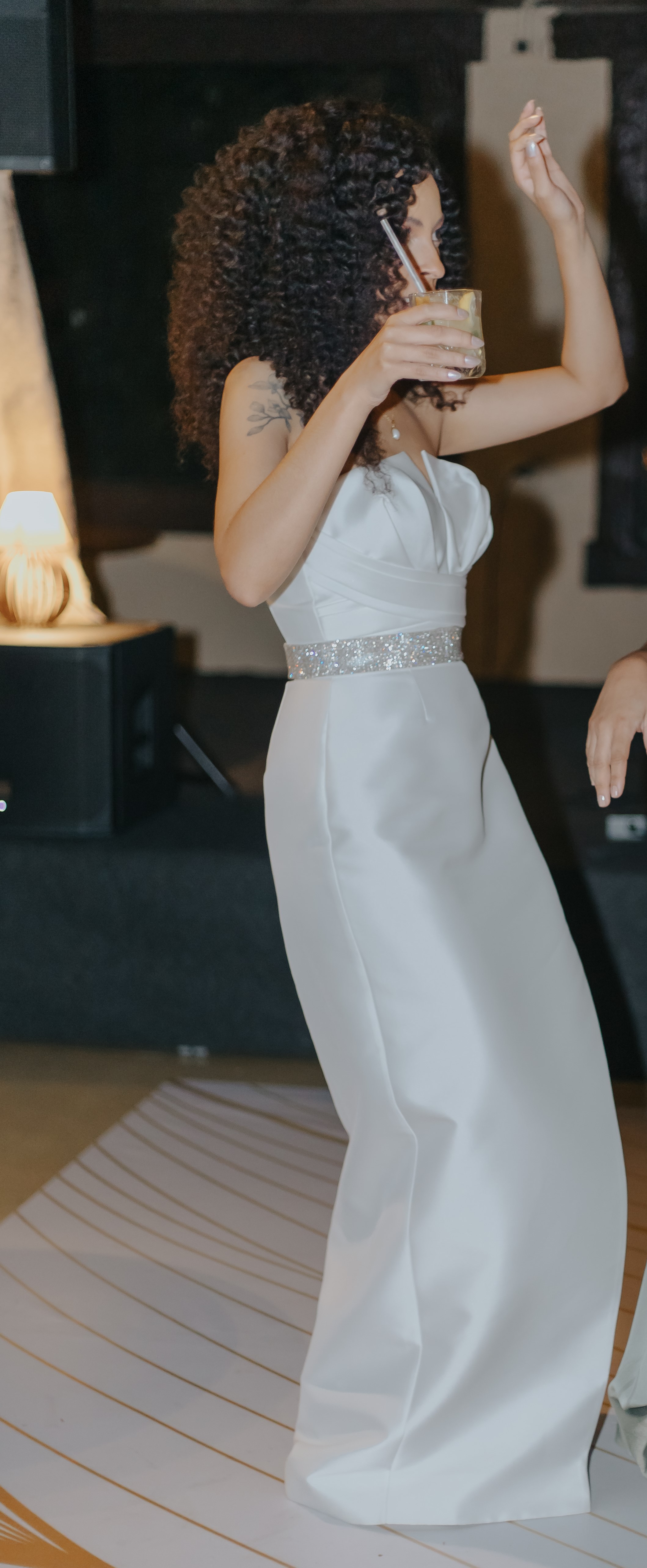 Este vestido de noiva deslumbrante, criado sob medida por um estilista renomado, é a perfeita fusão de sofisticação e modernidade. Confeccionado em zibeline de seda, um tecido luxuoso com brilho discreto e estrutura impecável, o vestido exala elegância. O design minimalista conta com estola em pedrarias. Com um corte impecável que valoriza a silhueta, ele possui uma saia sobreposta removível para a festa e cinto para este momento, marcando a cintura e valorizando ainda mais o vestido. Um design atemporal para a noiva moderna, que busca luxo e elegância. Perfeito para seu grande dia.