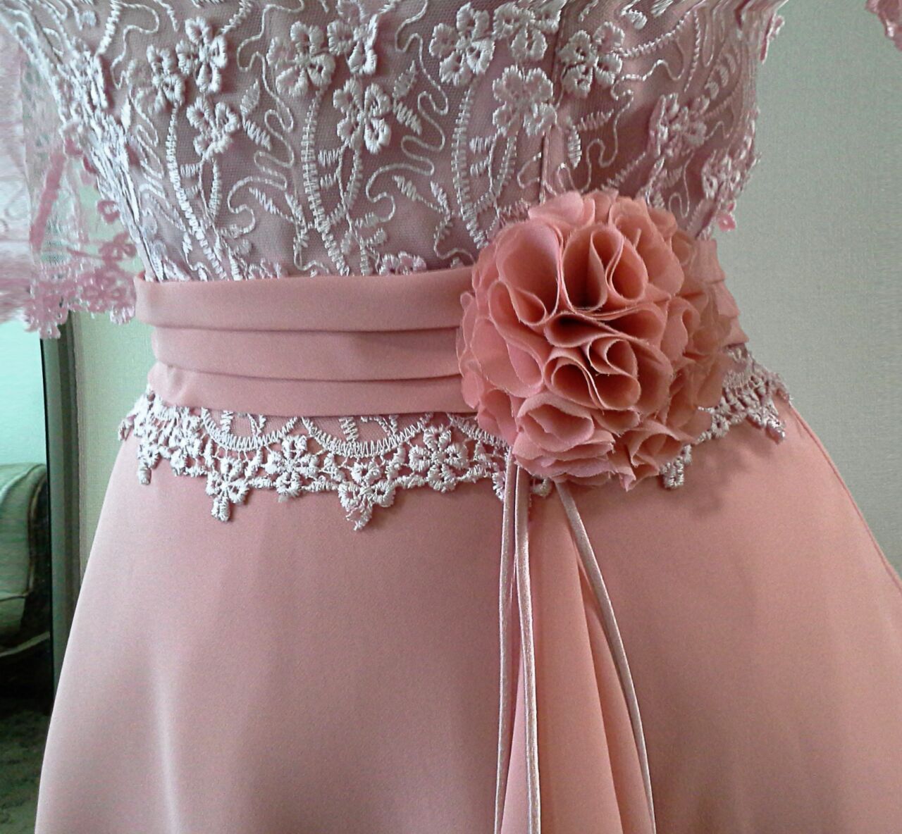faldon de tela gergge forrado en crep satin