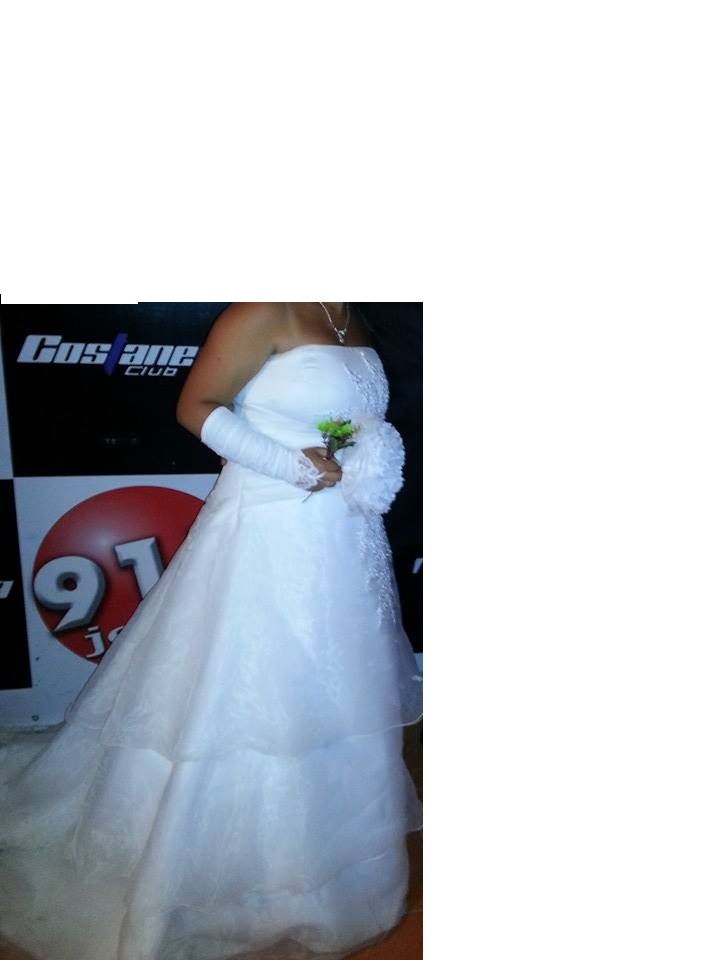 vestido de la casa blanca un solo uso, en excelente estado, color blanco, talla del vestido 38… incluye de regalo guantes (valor de compra $10.000) y adorno para el cabello (valor de compra $5000)
