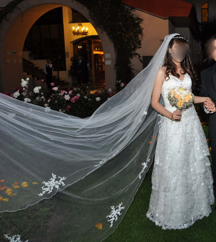 Está impecable, en muy buen estado. Viene con un velo de 3 metros con aplicaciones en macramé.