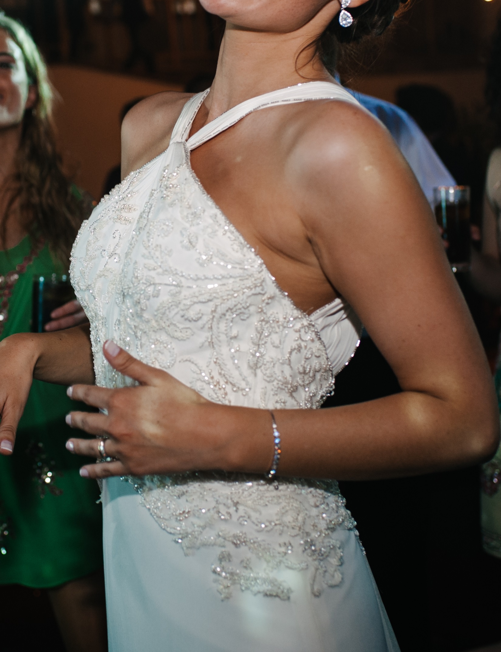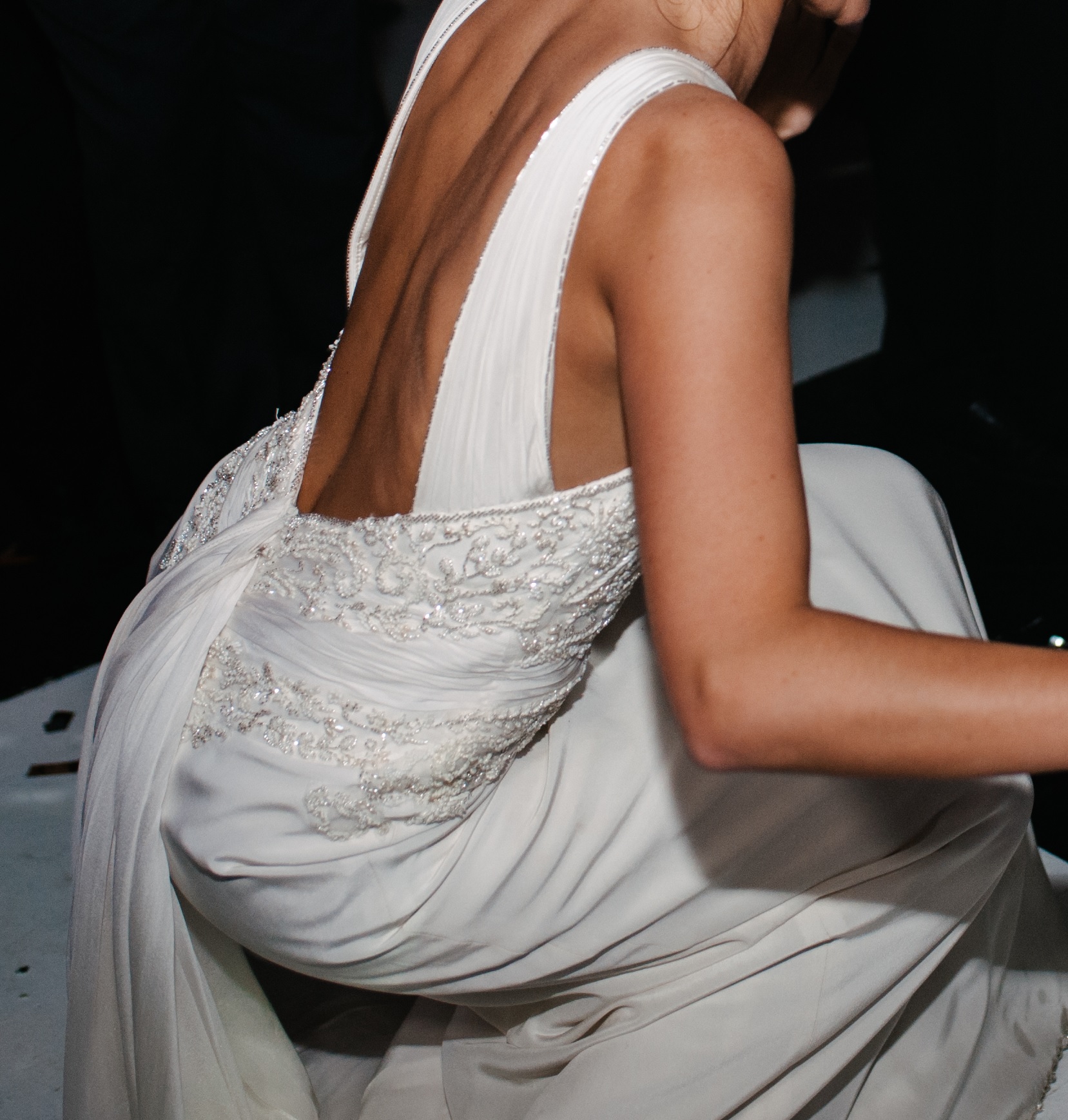 Pedrería bordada a mano, toques de plata