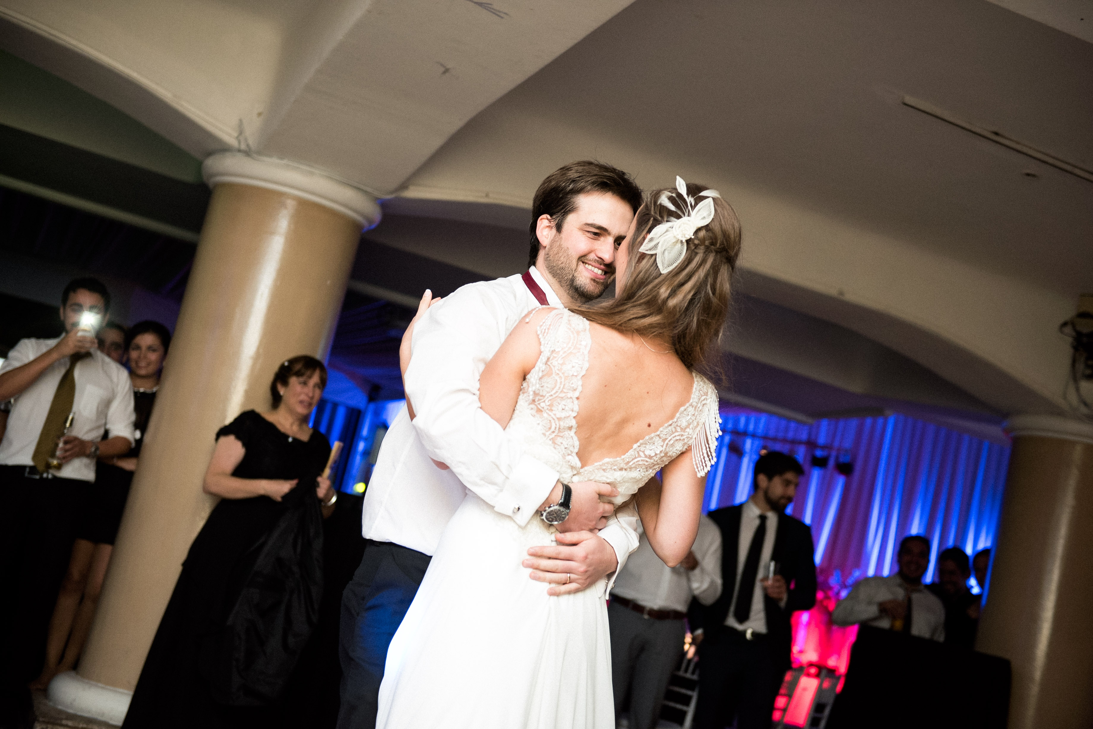 -Espalda en V con florcitas del encaje rebordadas