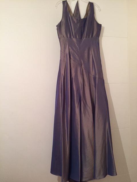 Vendo hermoso vestido de madrina/fiesta comprado en la exclusiva tienda Le Cocktail, en donde traen vestidos de Nueva York. El vestido es de color tornasolado de matices verdes y lilas. Es talla 46 y sólo se le hizo en la misma tienda un arreglo de hombros. Fue utilizado sólo una vez y luego enviado a limpiar a la Tintorería Le Blanc. El vestido trae un sobretodo del mismo color y tela del vestido.