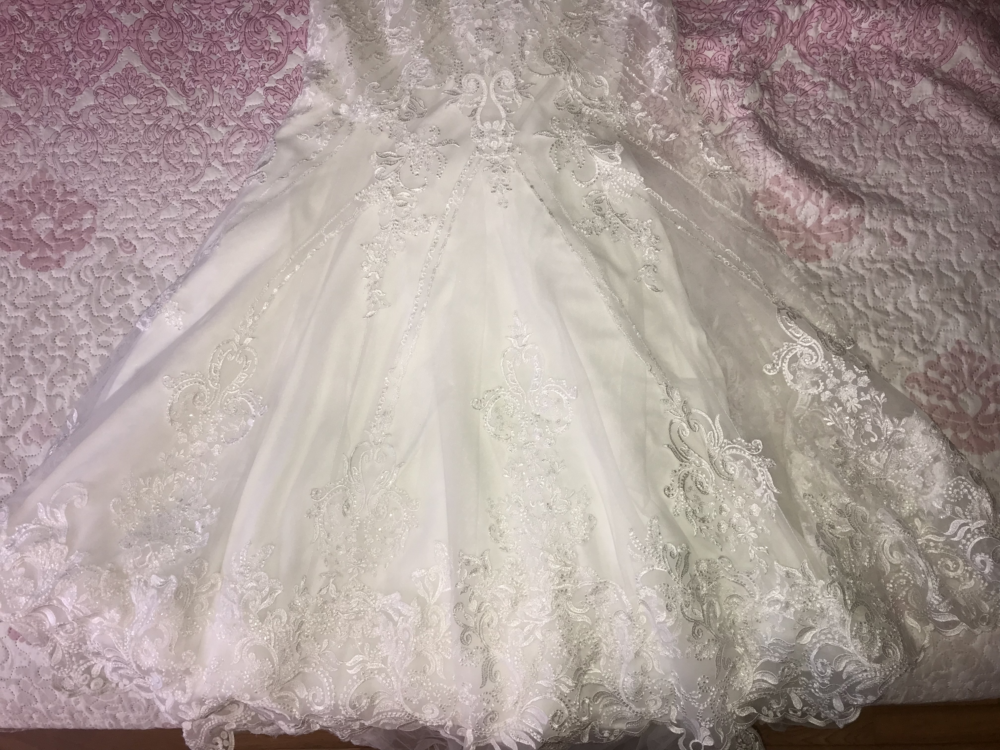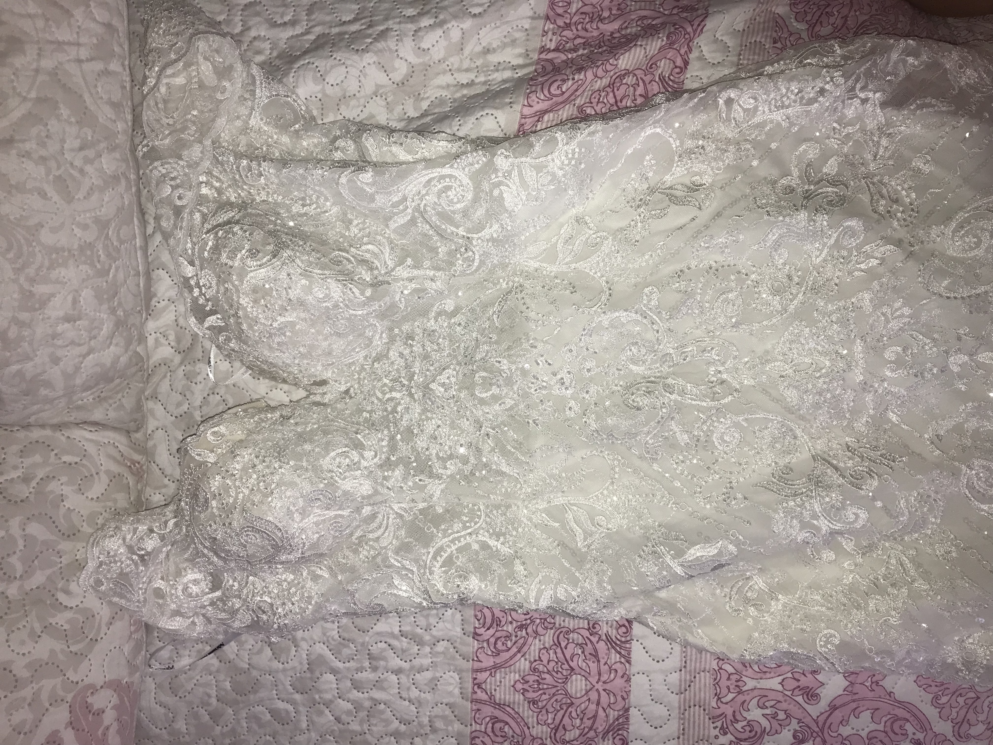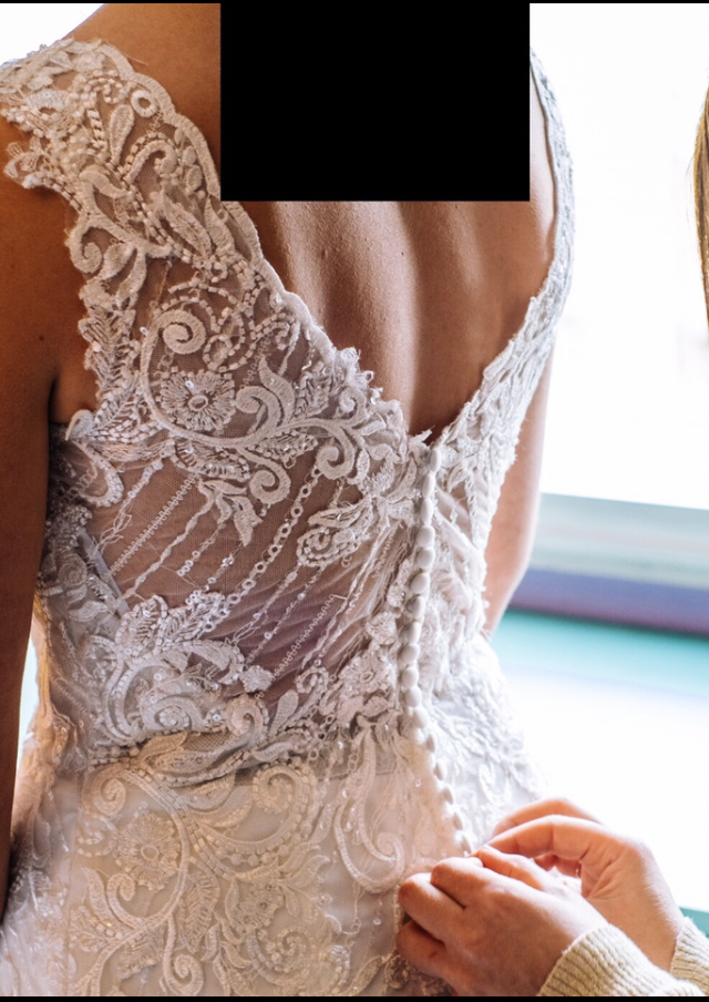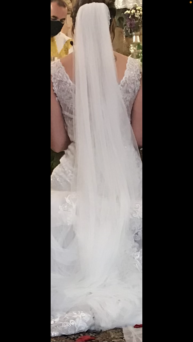 A finales de 2020 y regalo el velo liso que sale en las fotos (solo usado en la iglesia ) Está limpio de lavanderia, tengo videos donde se muestra bien en detalle antes de guardarlo. lo he tratado con mucho cariño. mis medidas son 90-68-108, mido 1,70 y llevaba unos tacones de 8 cm, por si sirve de referencia.