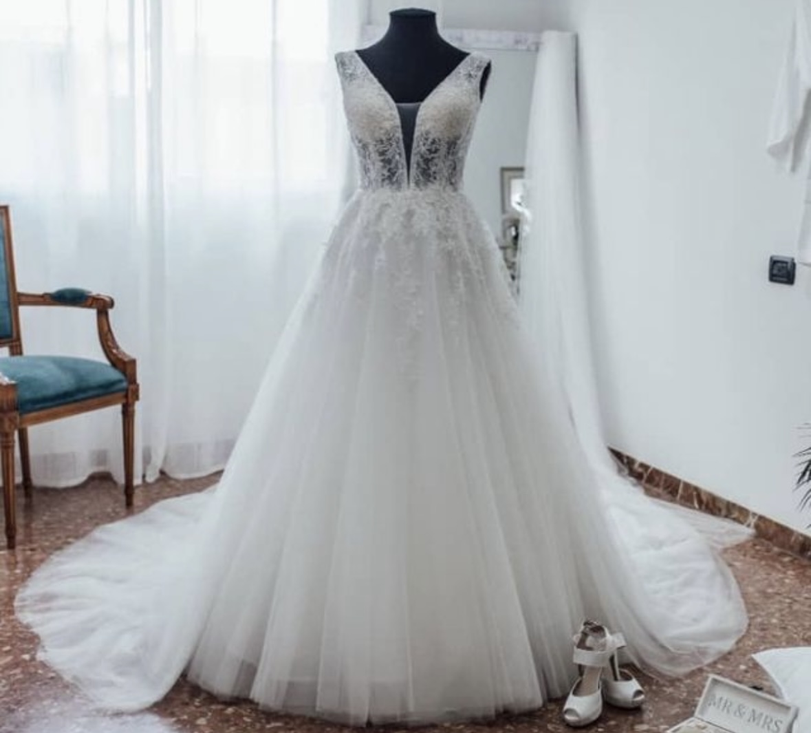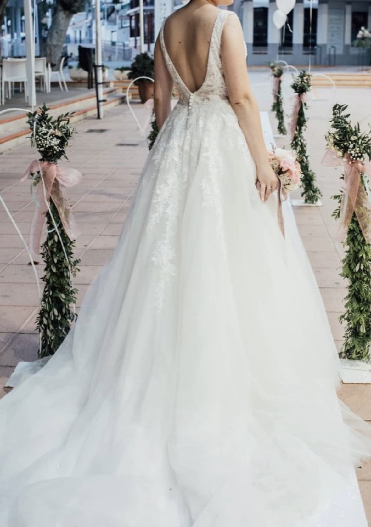Vestido de novia con velo y cancán de la colección de Aire de Barcelona, como nuevo, sin un solo rasguño, talla 36