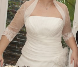 Acompañé al vestido con una chaqueta tipo bolero como se puede apreciar en alguna foto, la cual también fue lavada por la misma tintorería. El precio del vestido junto la chaqueta sería de 350€.