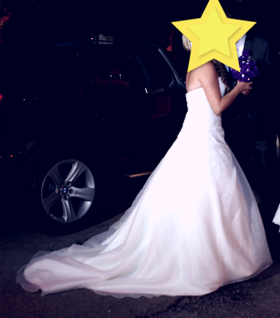 Traje usado tan solo el dia de la boda. Esta en perfecto estado y limpio de lavanderia y perfectamente guardado. Se vende con cancan. Tan solo arreglo de orilla.