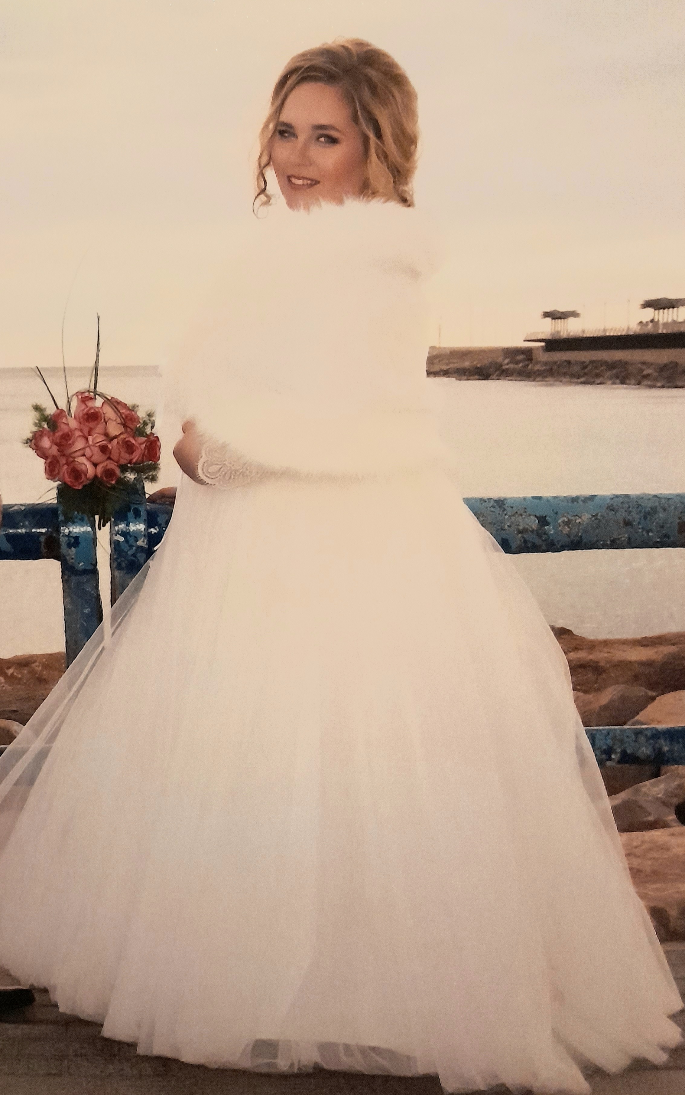 Oportunidad inmejorable. Precioso vestido de novia para chicas llenitas de amor:) Fue puesto una sola vez. Está en perfecto estado. Viene en su envoltorio original junto con el cancan y los zapatos para el pie 39/40 que te regalo junto con el vestido. Osea un traje completo de novia más guapa del mundo. Uy…Casi se me olvida, una fantástica capa a juego para una boda en el tiempo fresquito.¡Llévatelo todo junto ya por el precio irresistible!