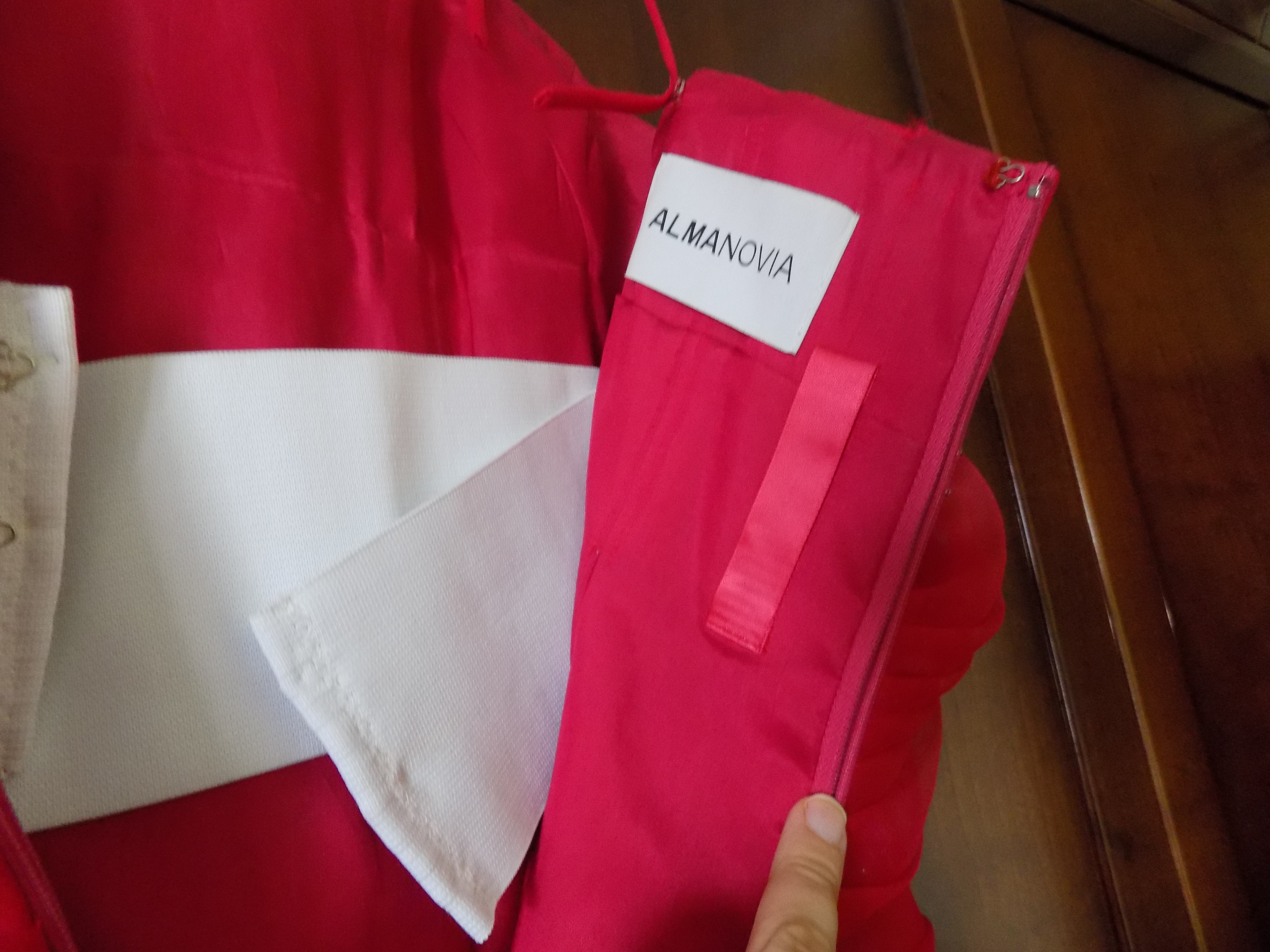 ESPECTACULAR VESTIDO. Colección Alma Novias. Color cereza precioso. Detalle de pedrería a tono. Talla 38-40. Altura 166. Puesto sólo una vez. Estado impecable. Lleva doble cremallera y tensores internos para una sujeción perfecta. Los tirantes se pueden quitar. No pesa y tiene mucho cuerpo. Sienta genial. Regalo el fular a juego.