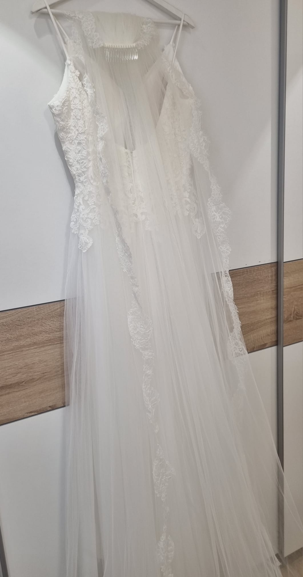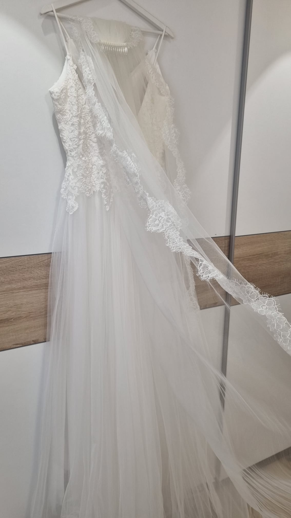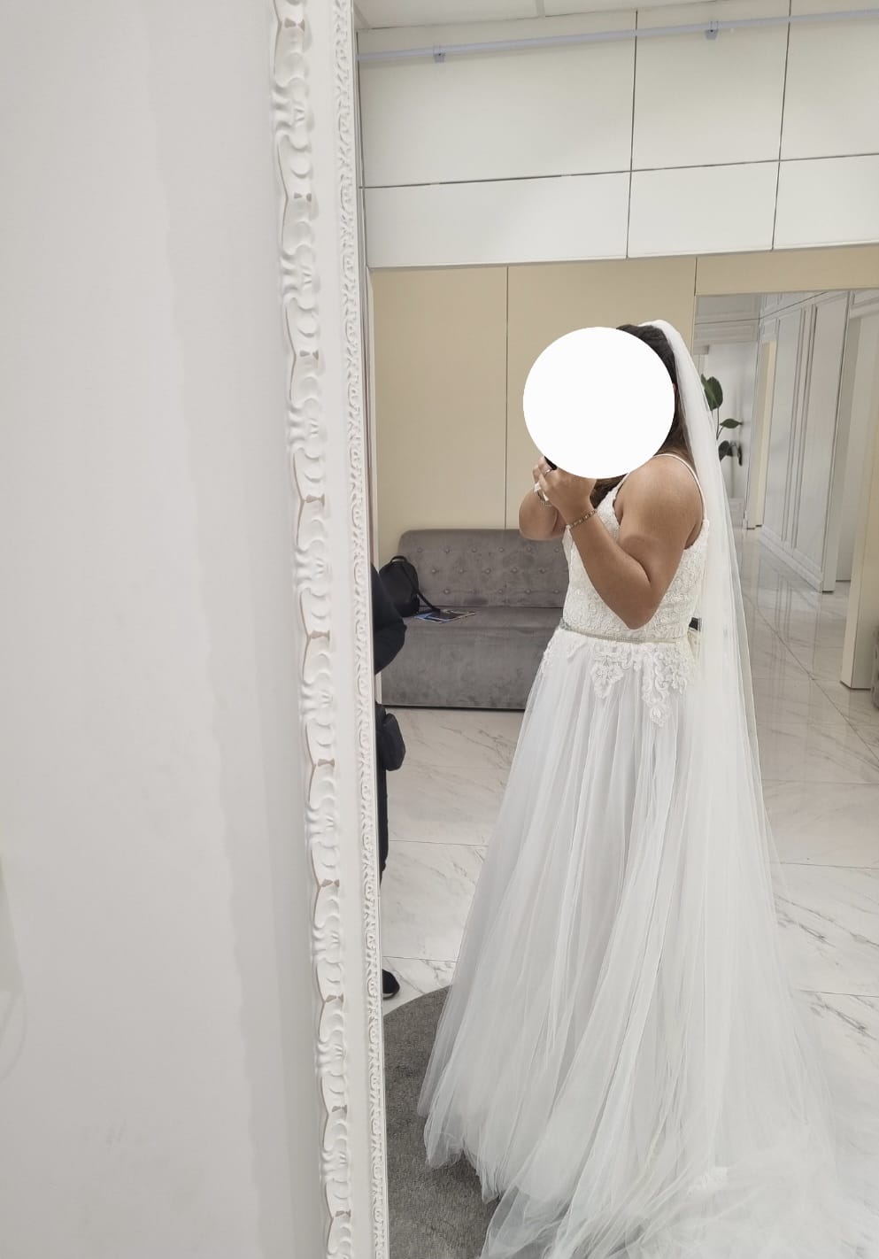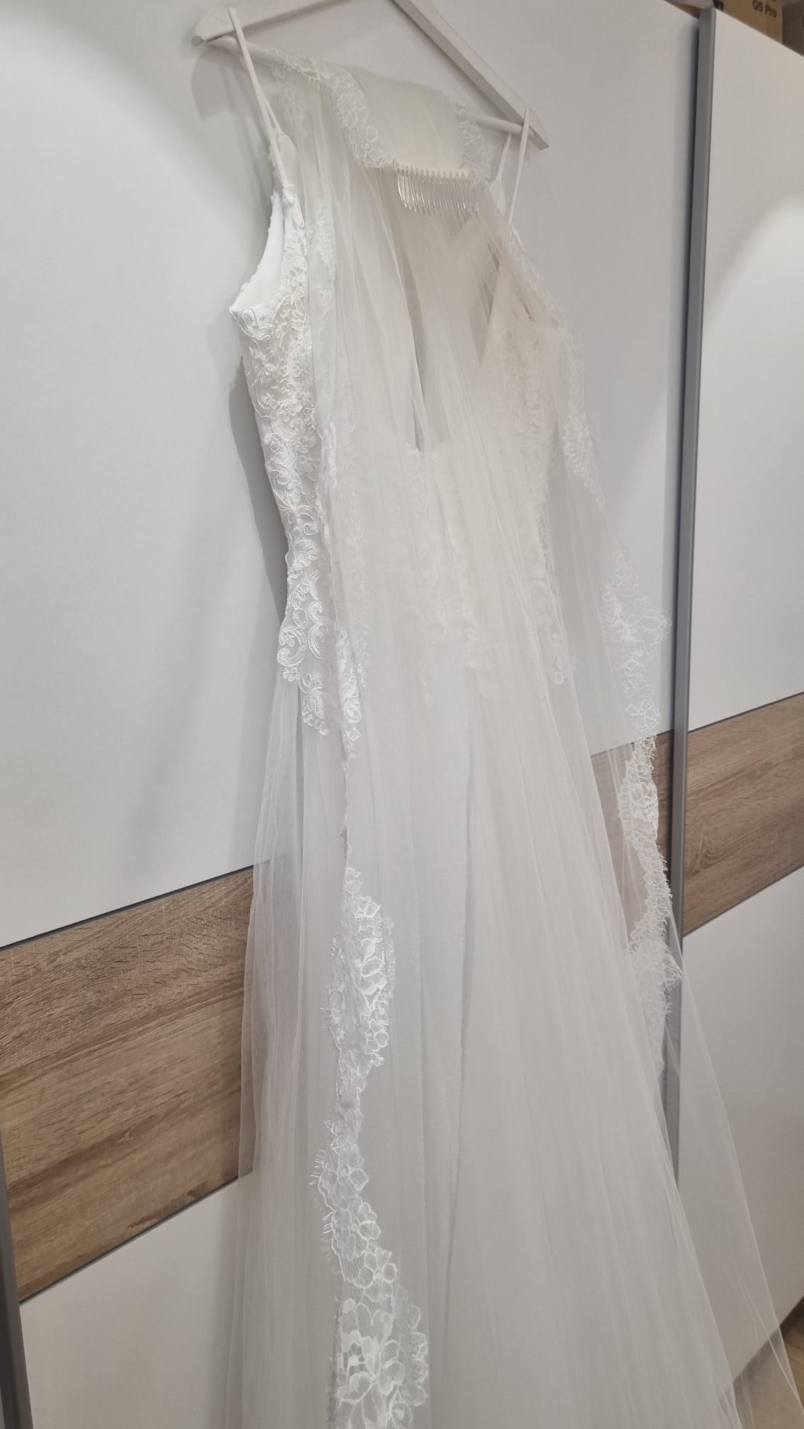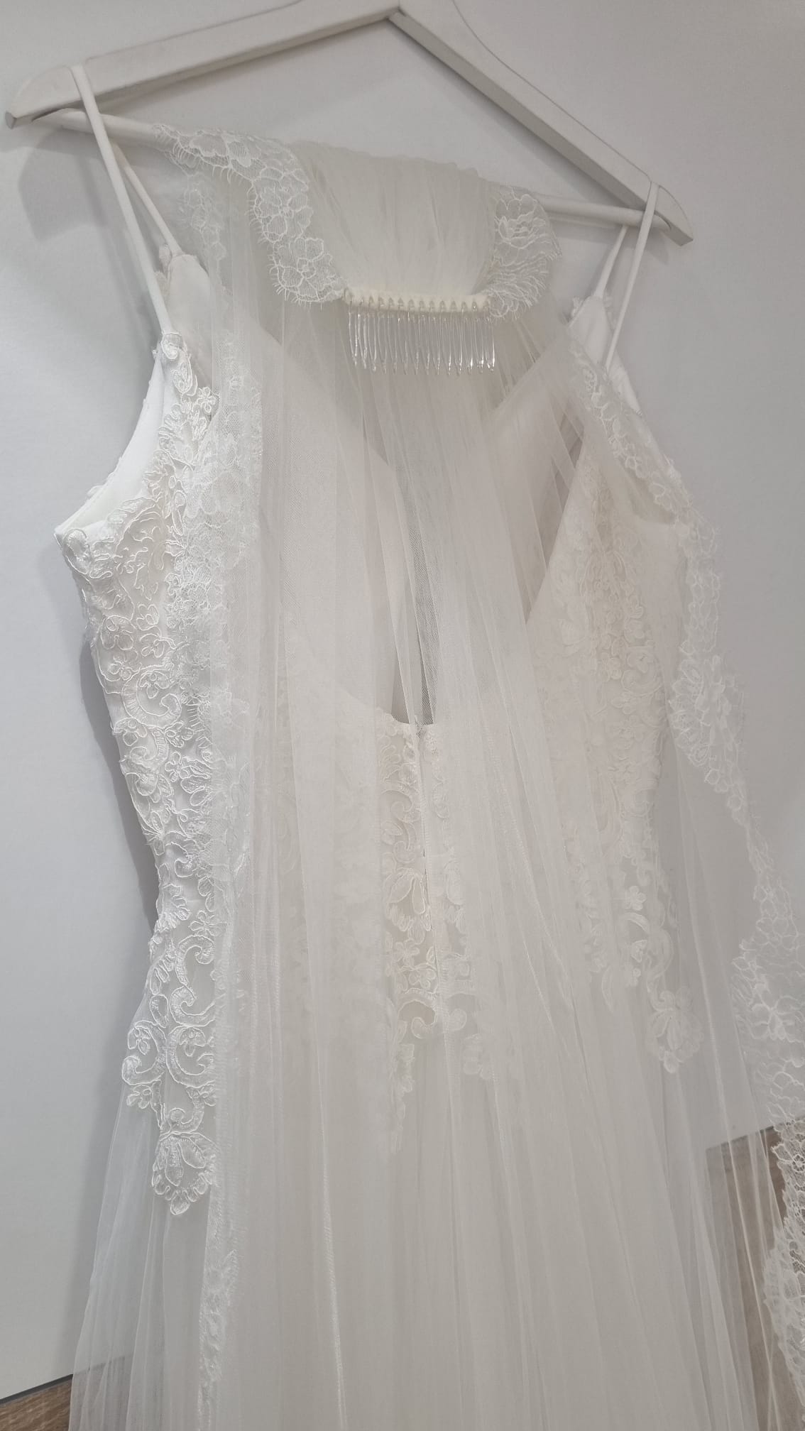 Viene incluido el velo. El vestido está en perfecto estado, sacado de la tintorería y guardado en su funda.