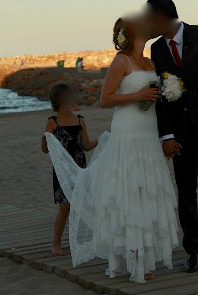 Perfecto para una boda en un entorno natural, la playa o el campo. Encaje de fantástica calidad, sin modificar. En estado perfecto y limpiado profesionalmente. llamame.