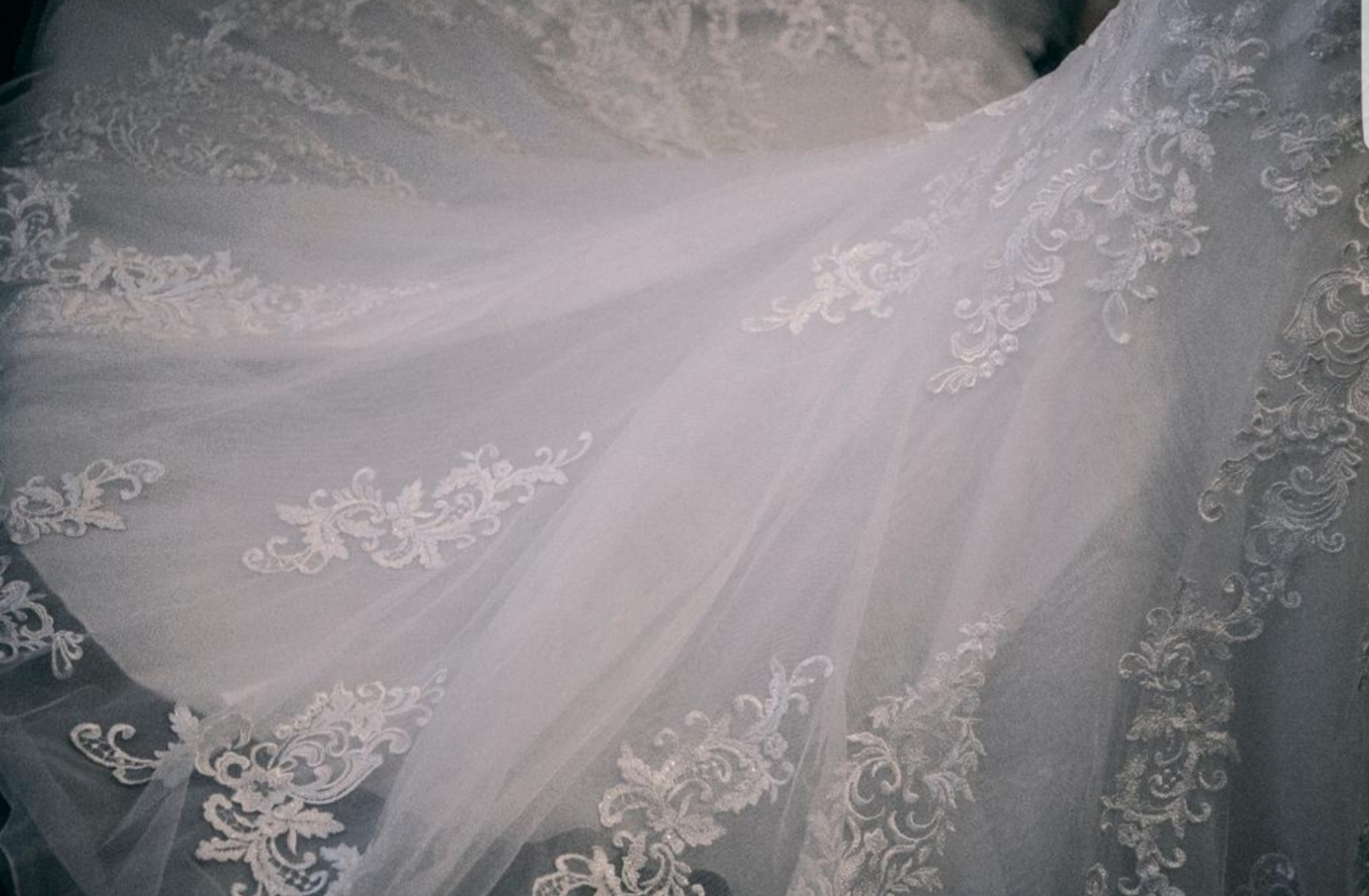 Mangas de tul con puños bordados.