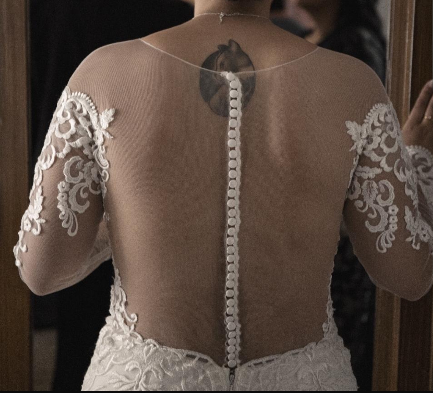 Espalda de tul botones tipo tattoo.