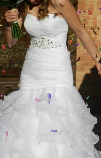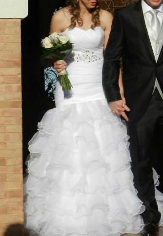 Se vende vestido de novia talla 36-38. Ajustado de organza y con volantes.