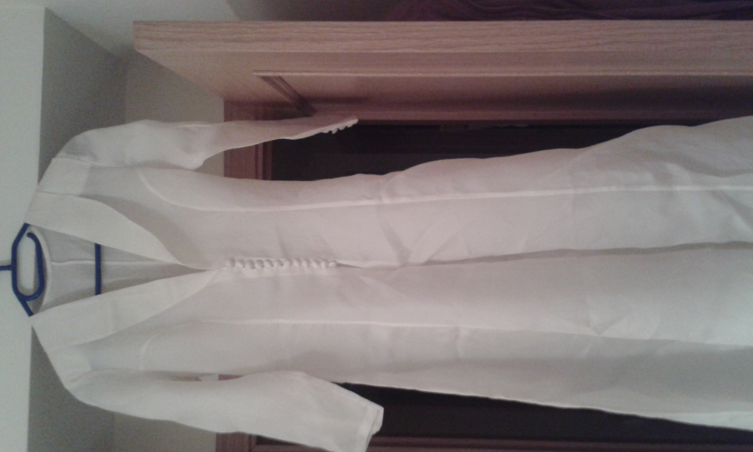 El vestido en dos piezas (vestido en seda dupion y abrigo en seda natural) mas el velo….es único. …mejor verlo! Color blanco roto. Precio negociable