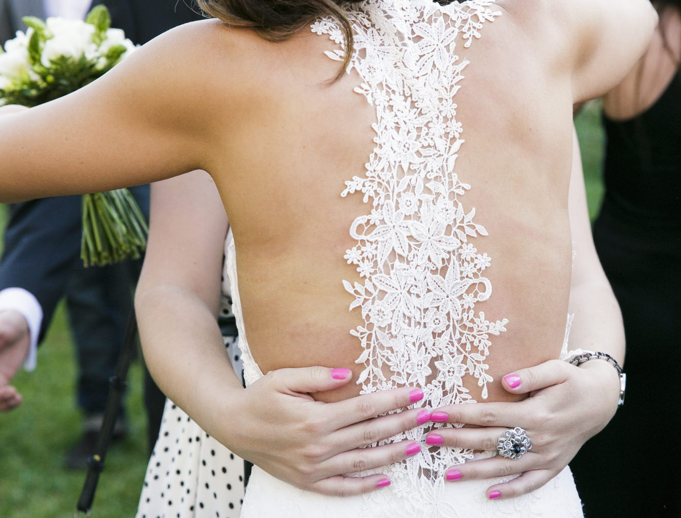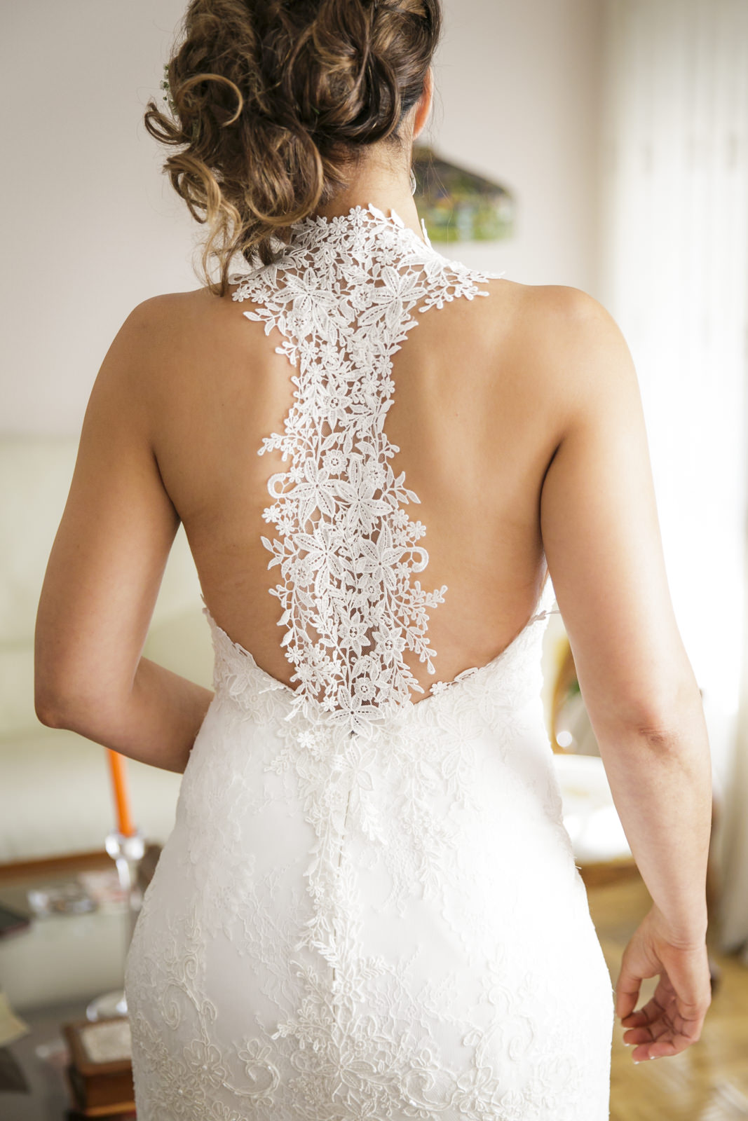 LA ESPALDA ES COMPLETAMENTE PRECIOSA, MI PARTE PREFERIDA DEL VESTIDO, CON LA ESPALDA AL AIRE Y UN ENCAJE QUE VA DESDE EL CUELLO HASTA LA CINTURA.