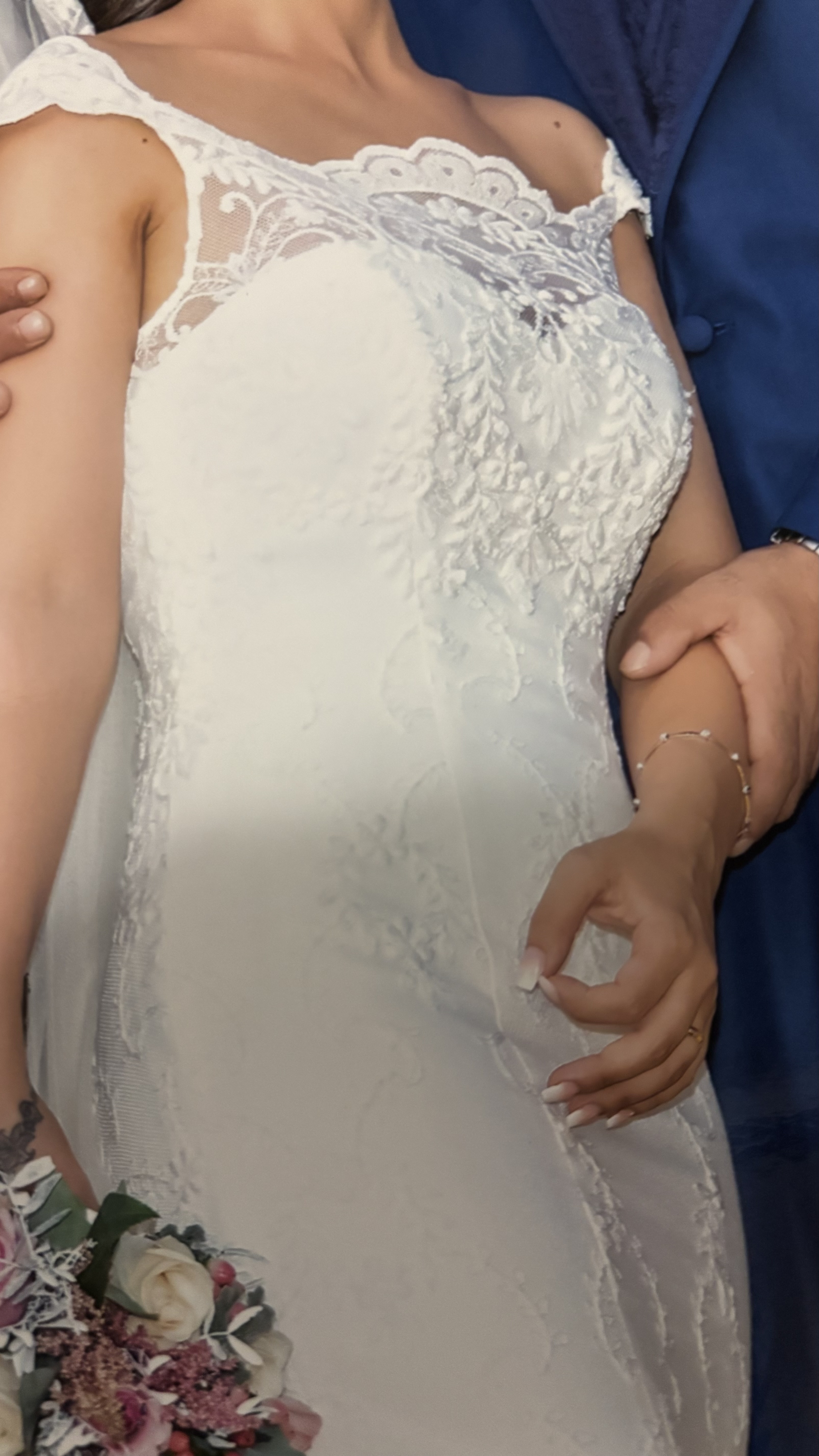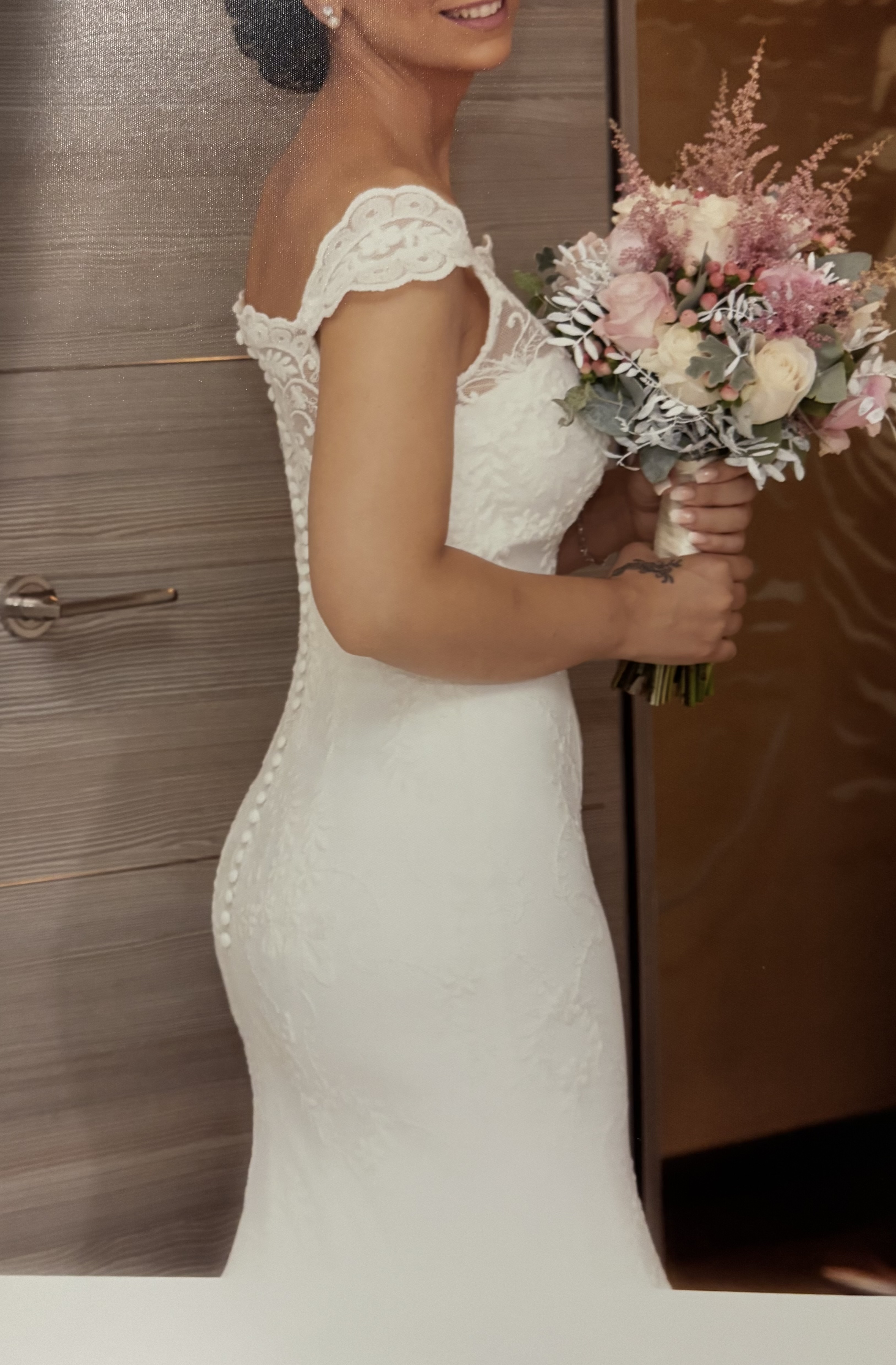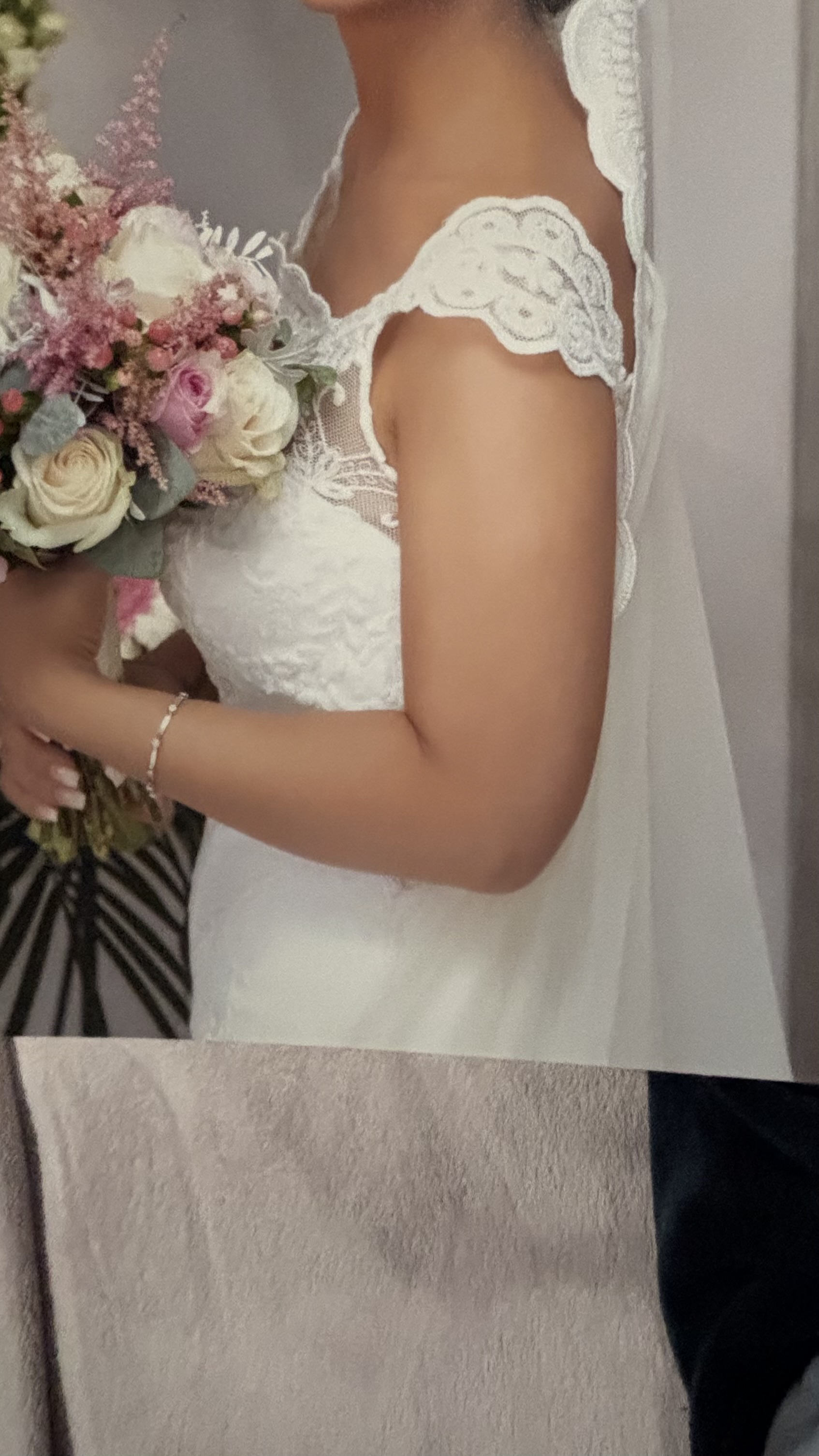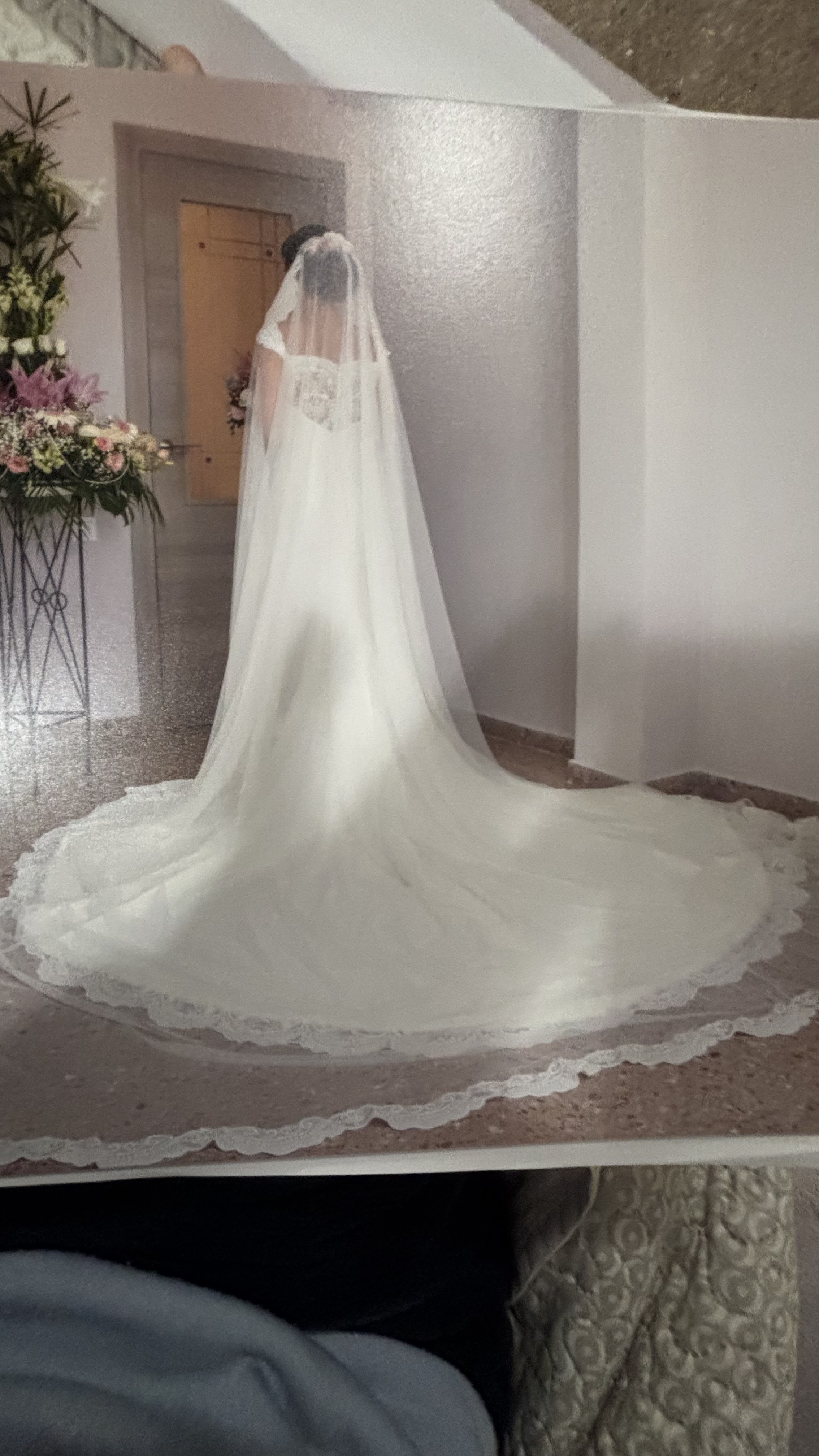 Súper ligero uu cómodo de llevar , elegantísimo , regalo el velo que me costó 890€