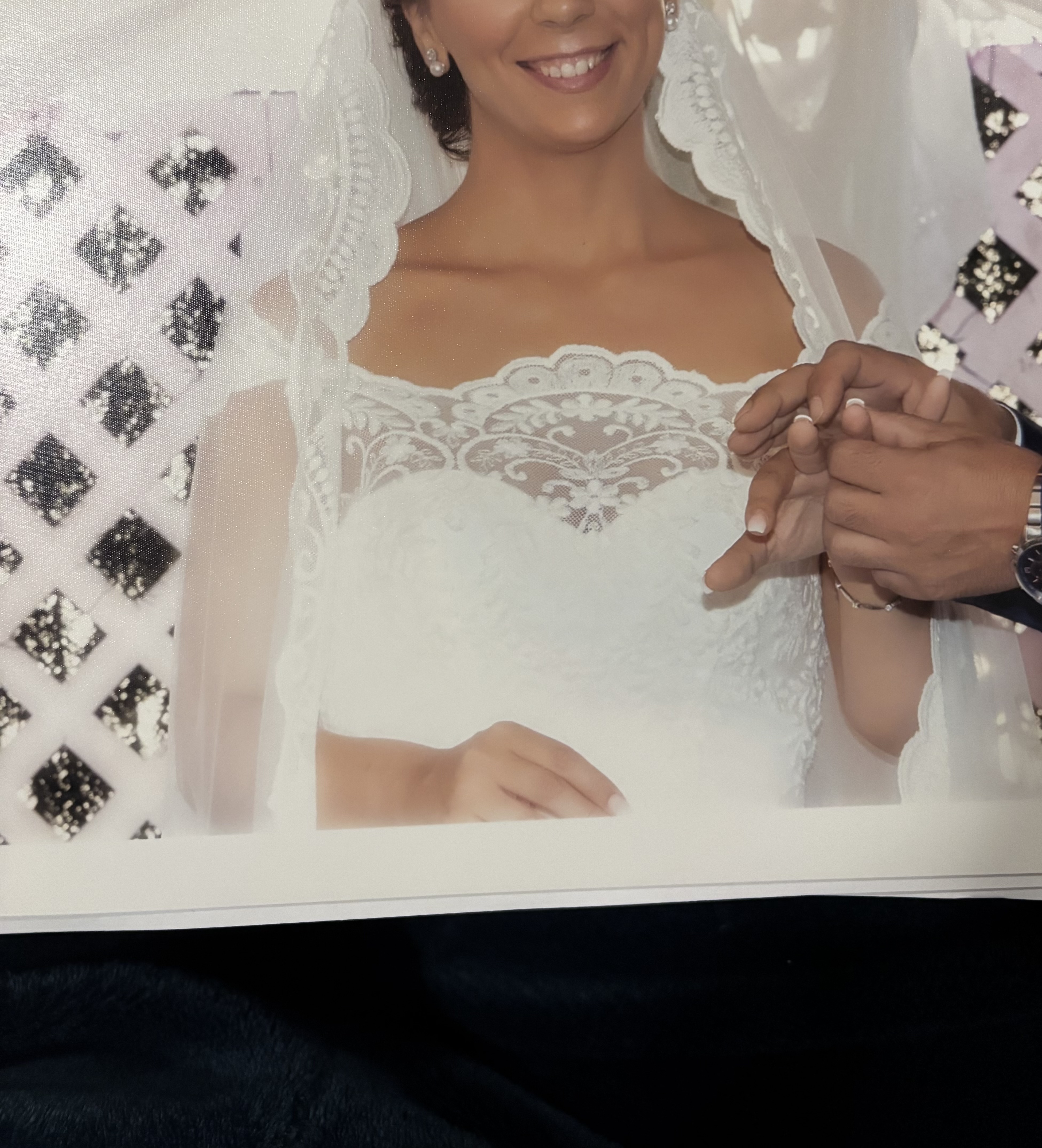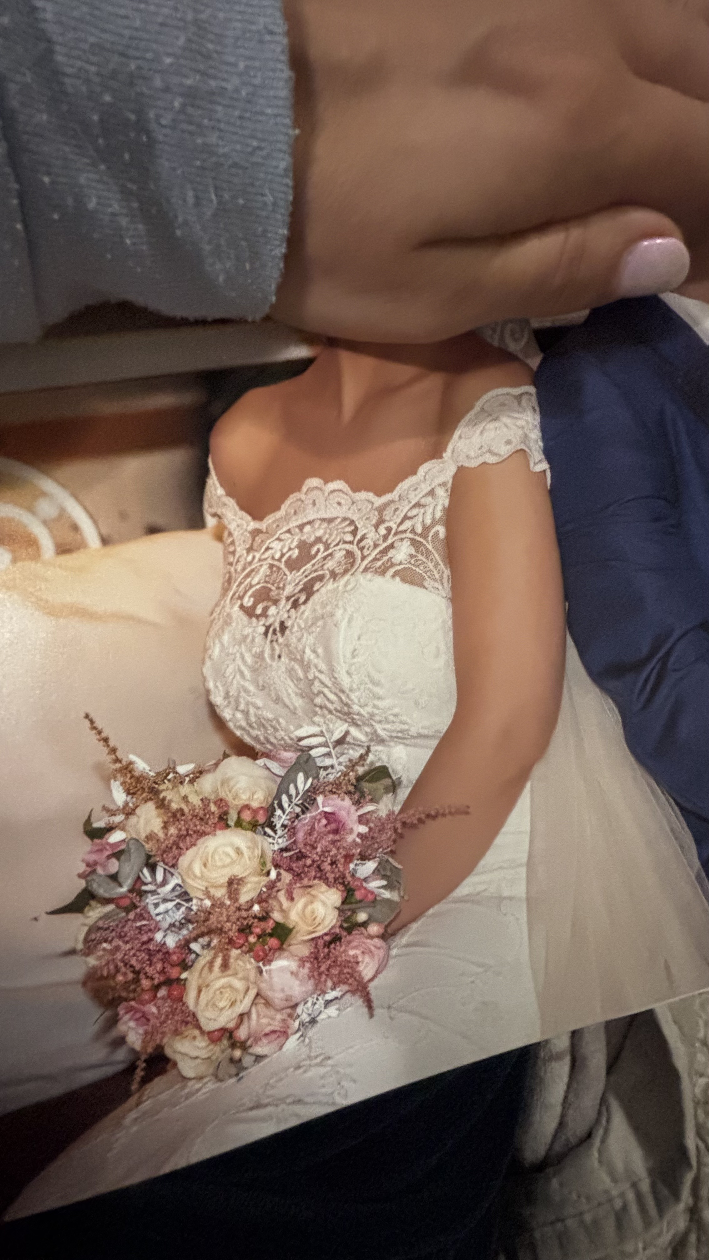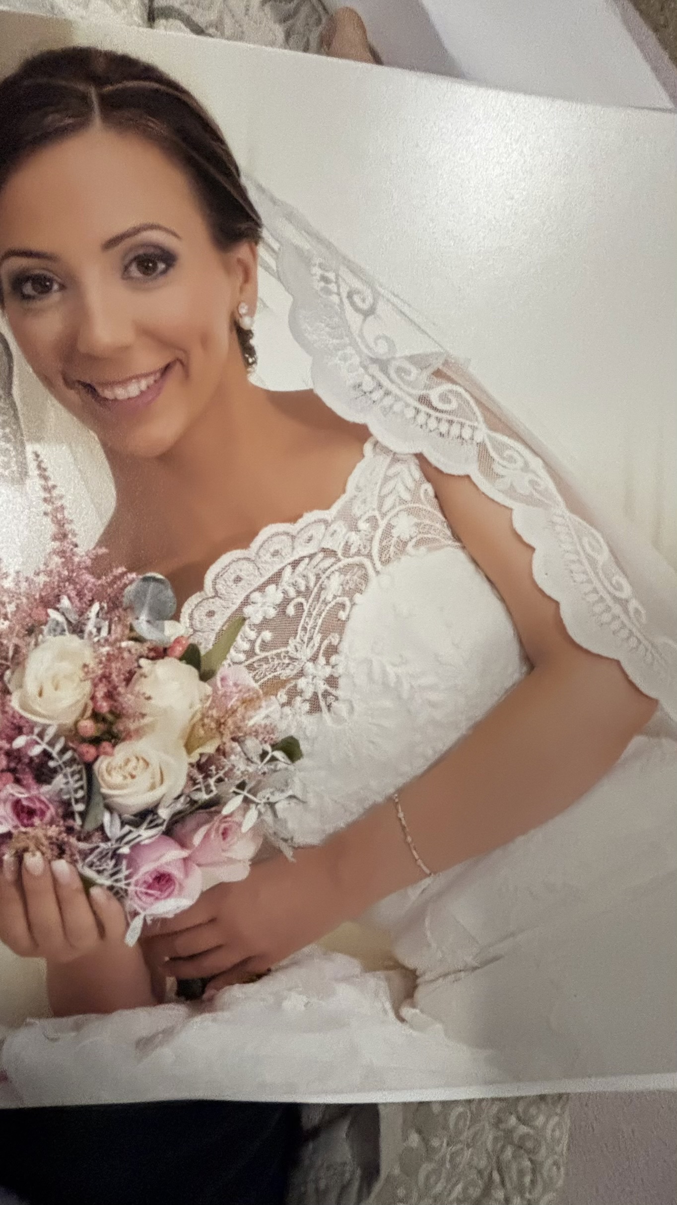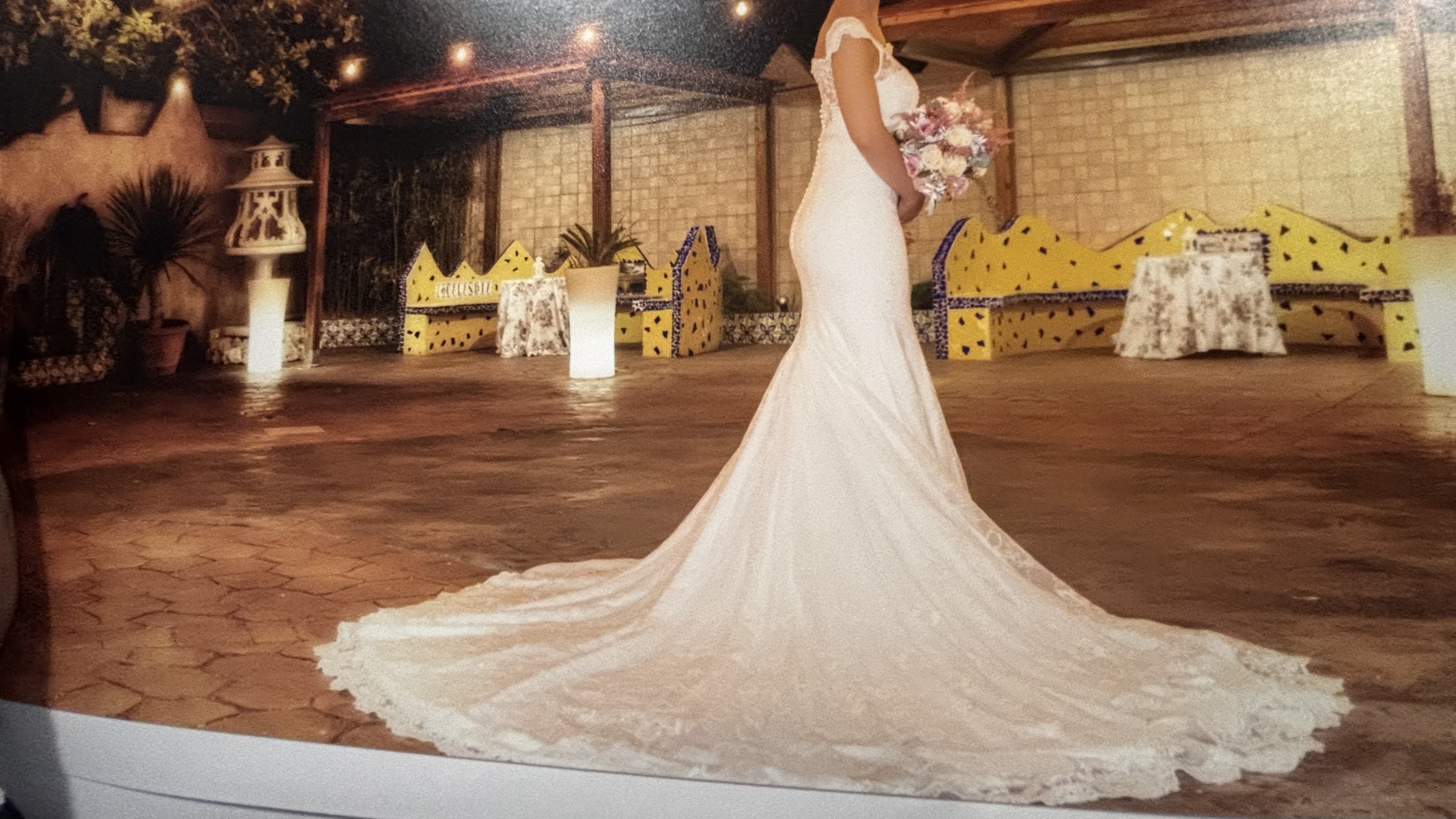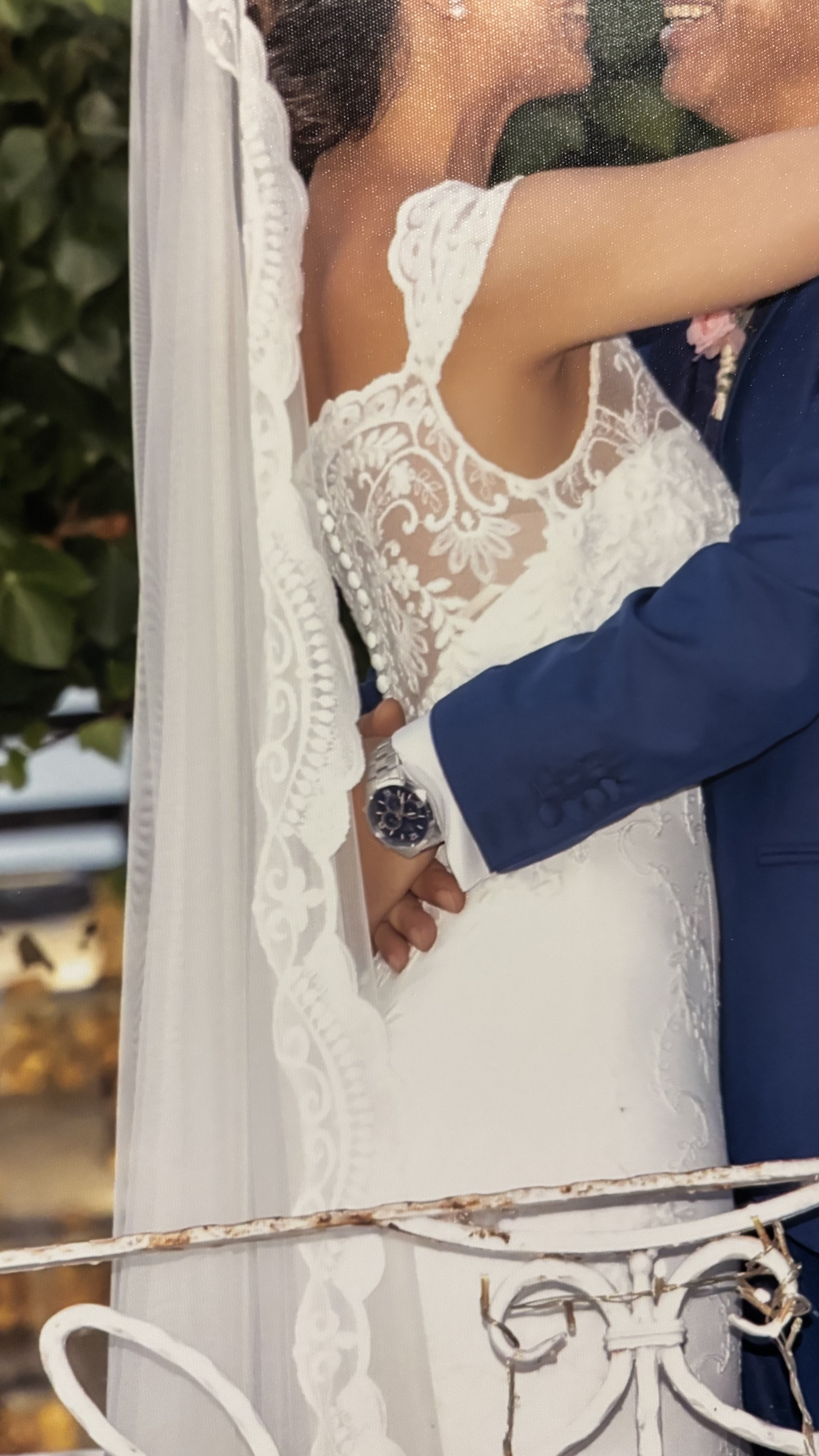 Súper ligero uu cómodo de llevar , elegantísimo , regalo el velo que me costó 890€