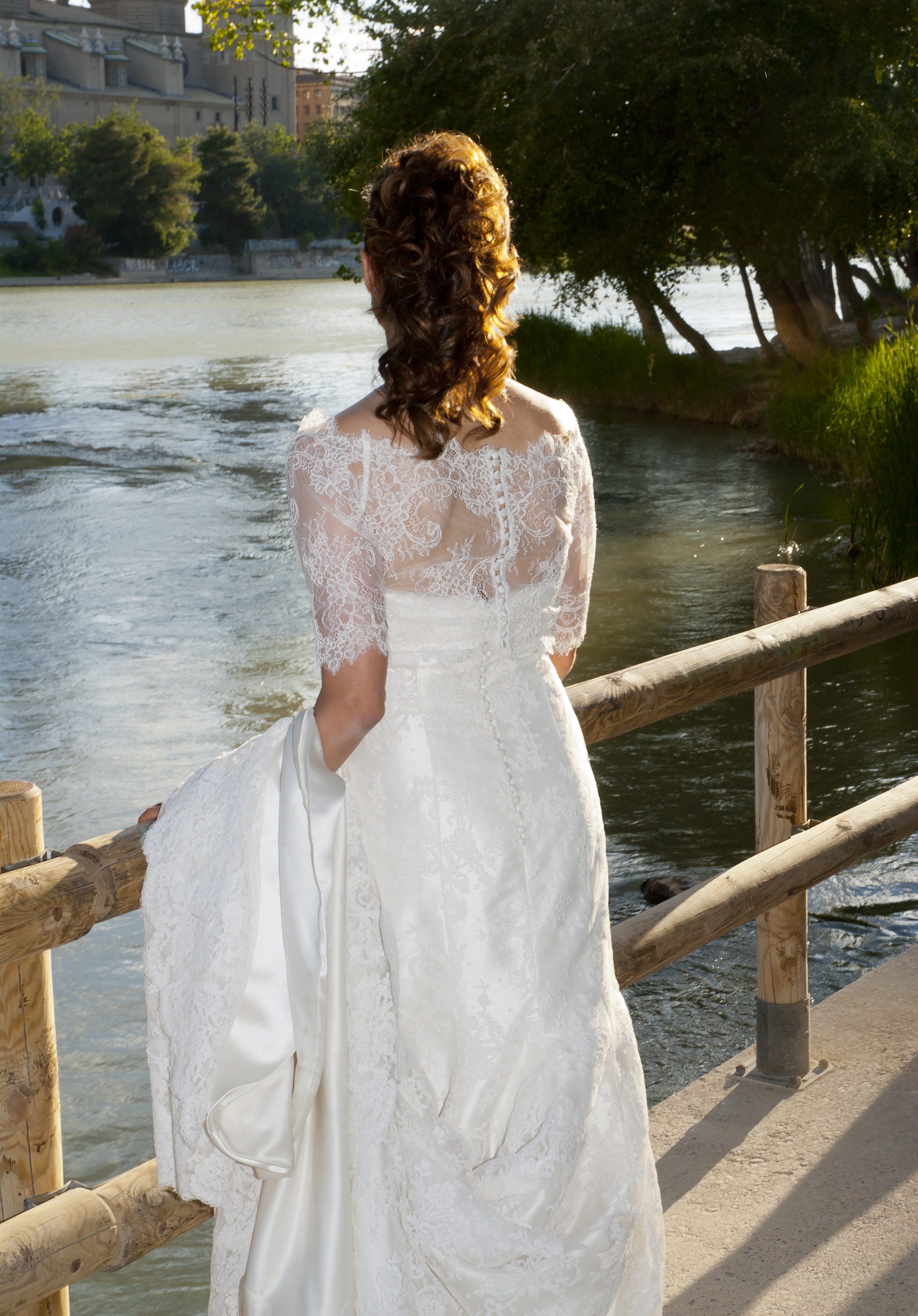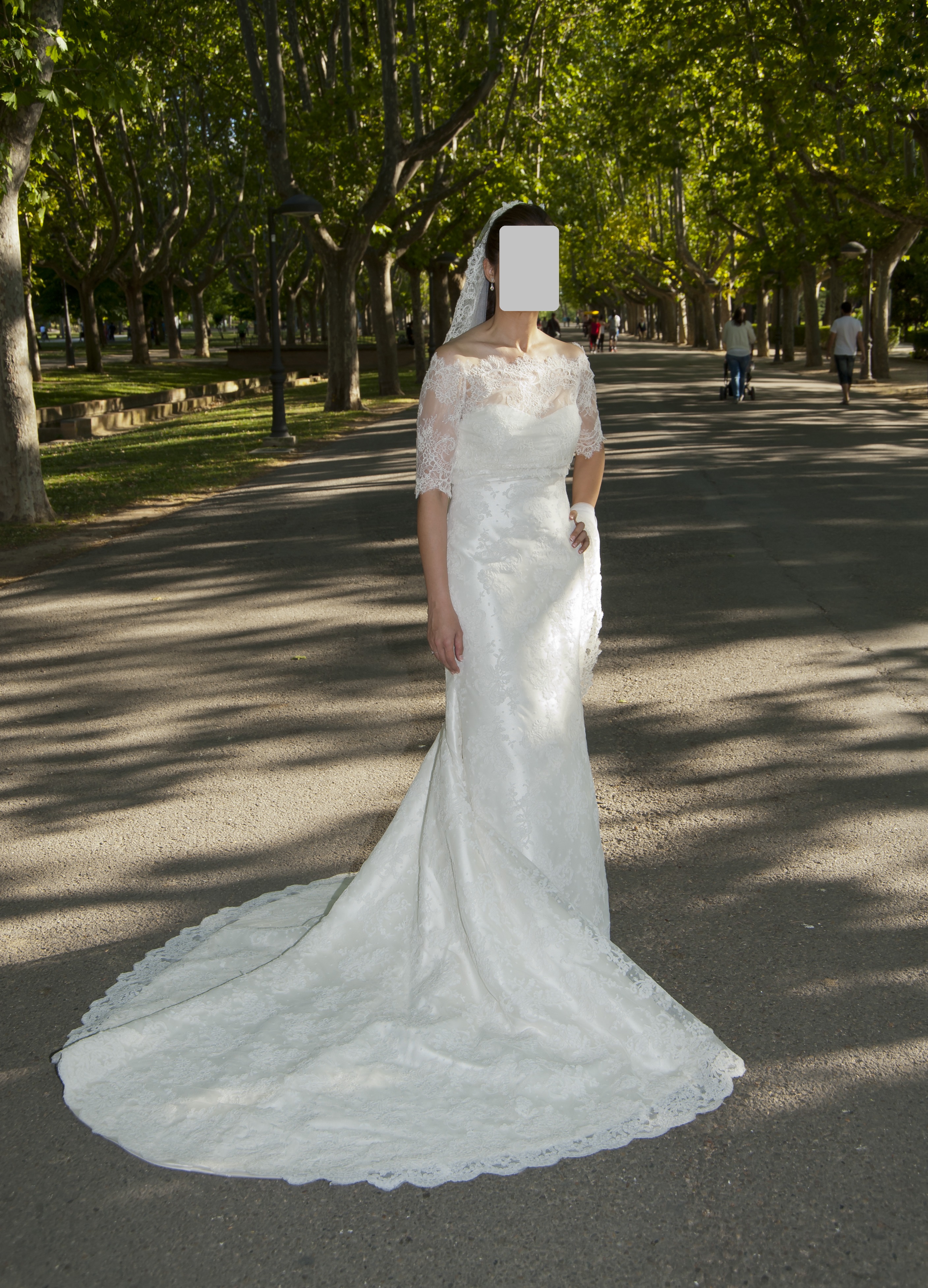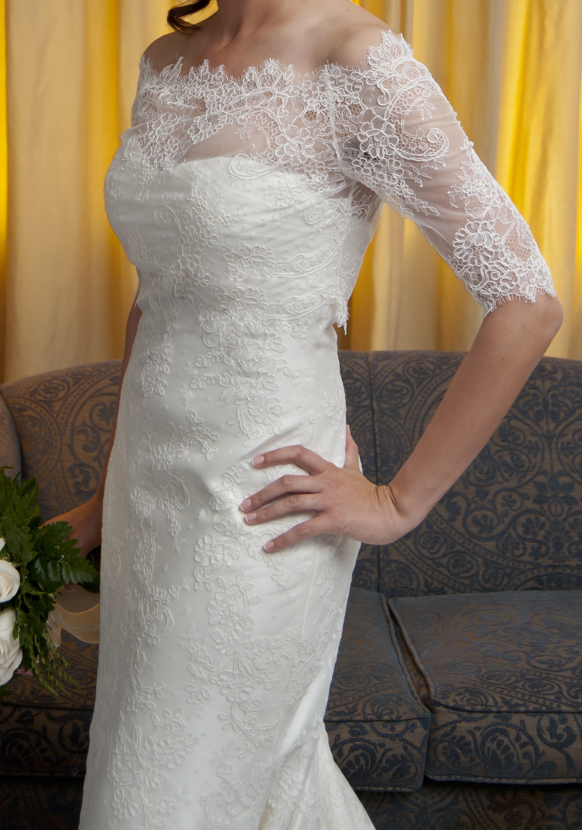 Incluye chaqueta agape cuello de barca, de manga francesa encaje.