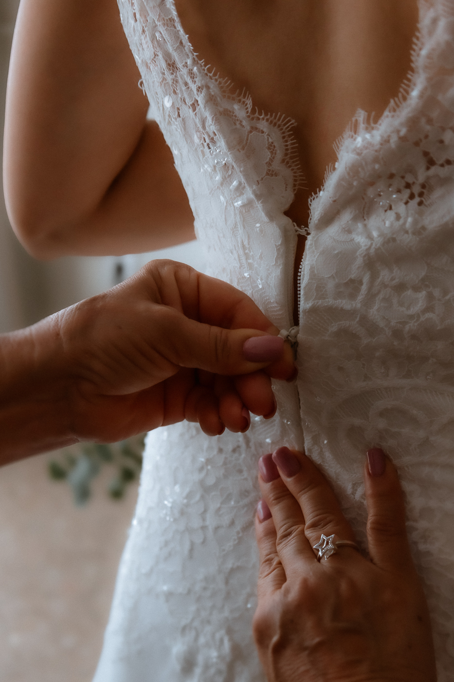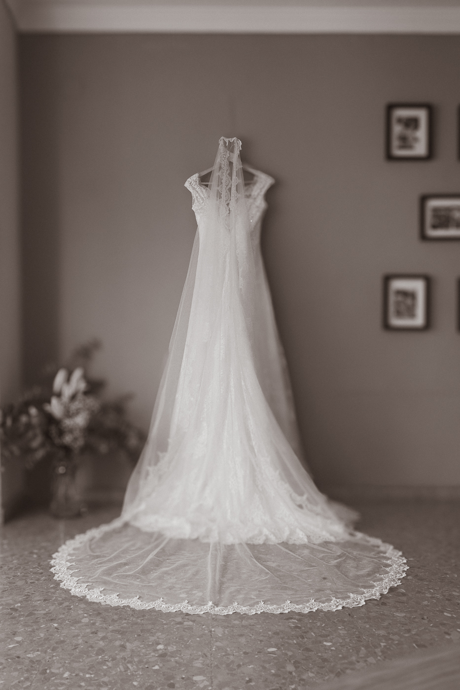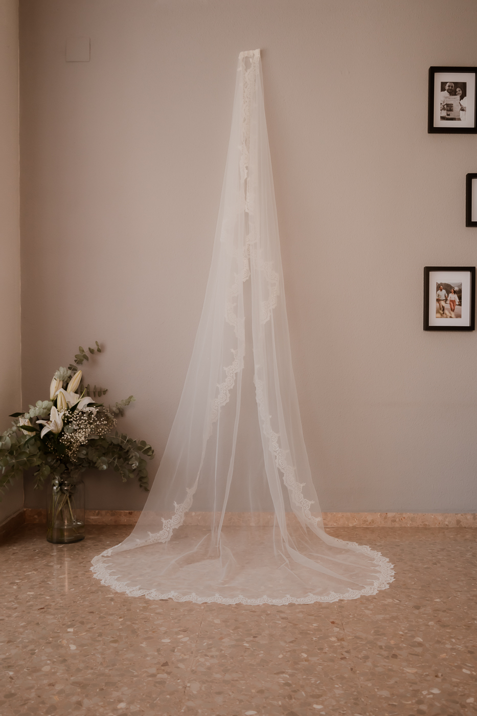 Vestido nuevo, se uso para la ceremonia nada mas un par de horas,tiene lentejuelas de decoración que le dan un toque especial, llevándose el vestido todo el protagonismo. Talla 36, los retoques que se le hicieron al vestido fue solo de hombros y de delante la parte baja para poder dar el paso y no pisar el vestido y caerse, por lo demás esta intacto.