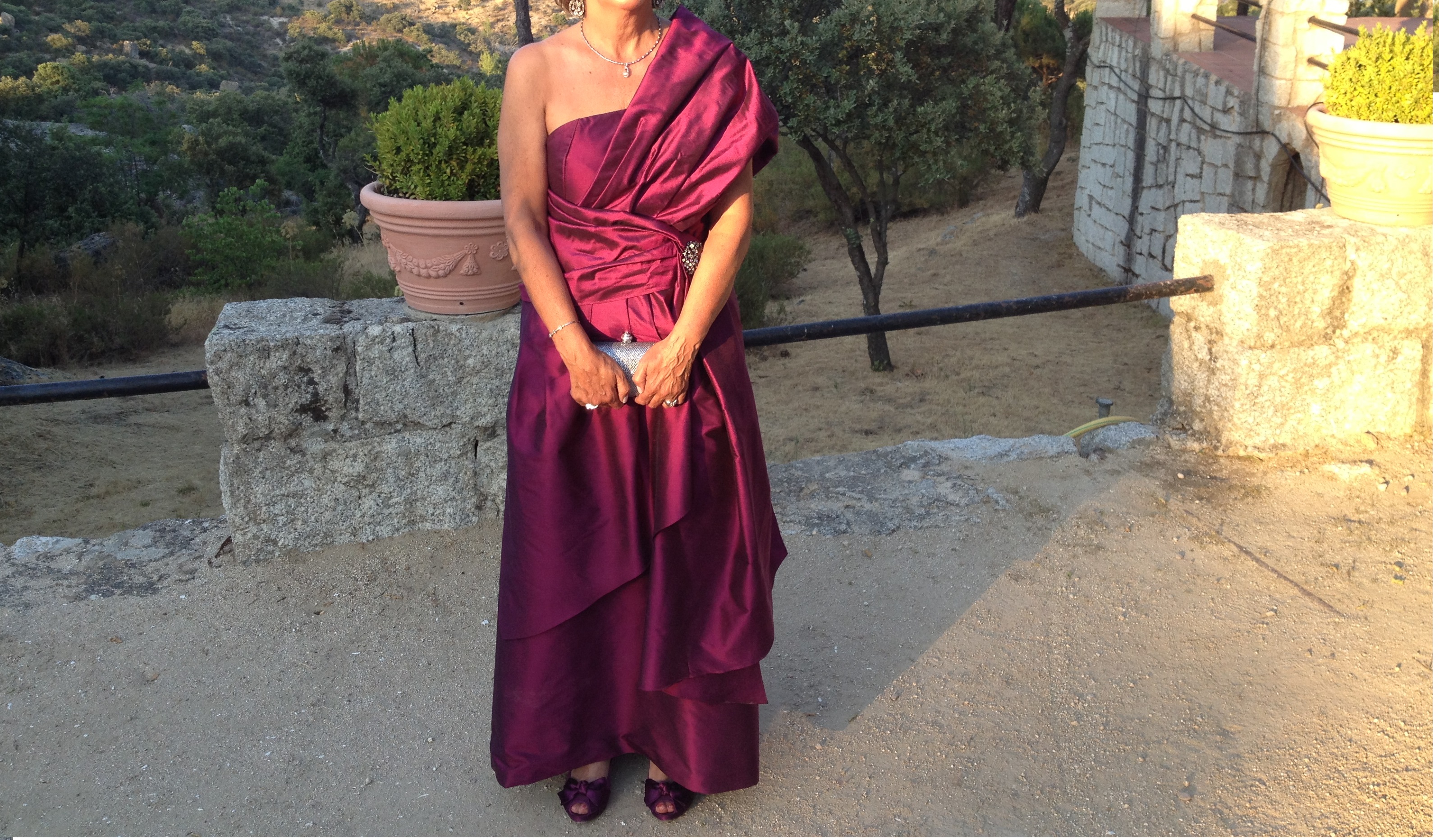 Elegante vestido de madrina color berenjena en perfecto estado. Es de seda natural.