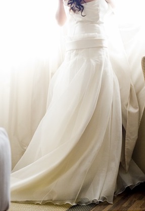 Único día de puesta en la boda. La talla corresponde a una 34/36. La falda es una organza de seda