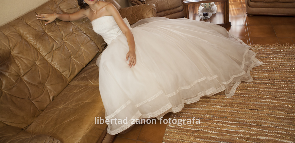 Espectacular vestido.Cuando lo ví me enamoré. hace tipazo. El cuerpo es un brocado precioso y la falda es de tul con tela de organza la última capa de encima. el vestido está nuevo,solo puesto el día de la boda. gasto aprox.una talla 38,lo podéis ver en la par oficial del diseñador. el lazo a mitad de espalda hace del vestido muy original.Mido 1,60 mas 10 cms de tacon.Me costó 2800 €