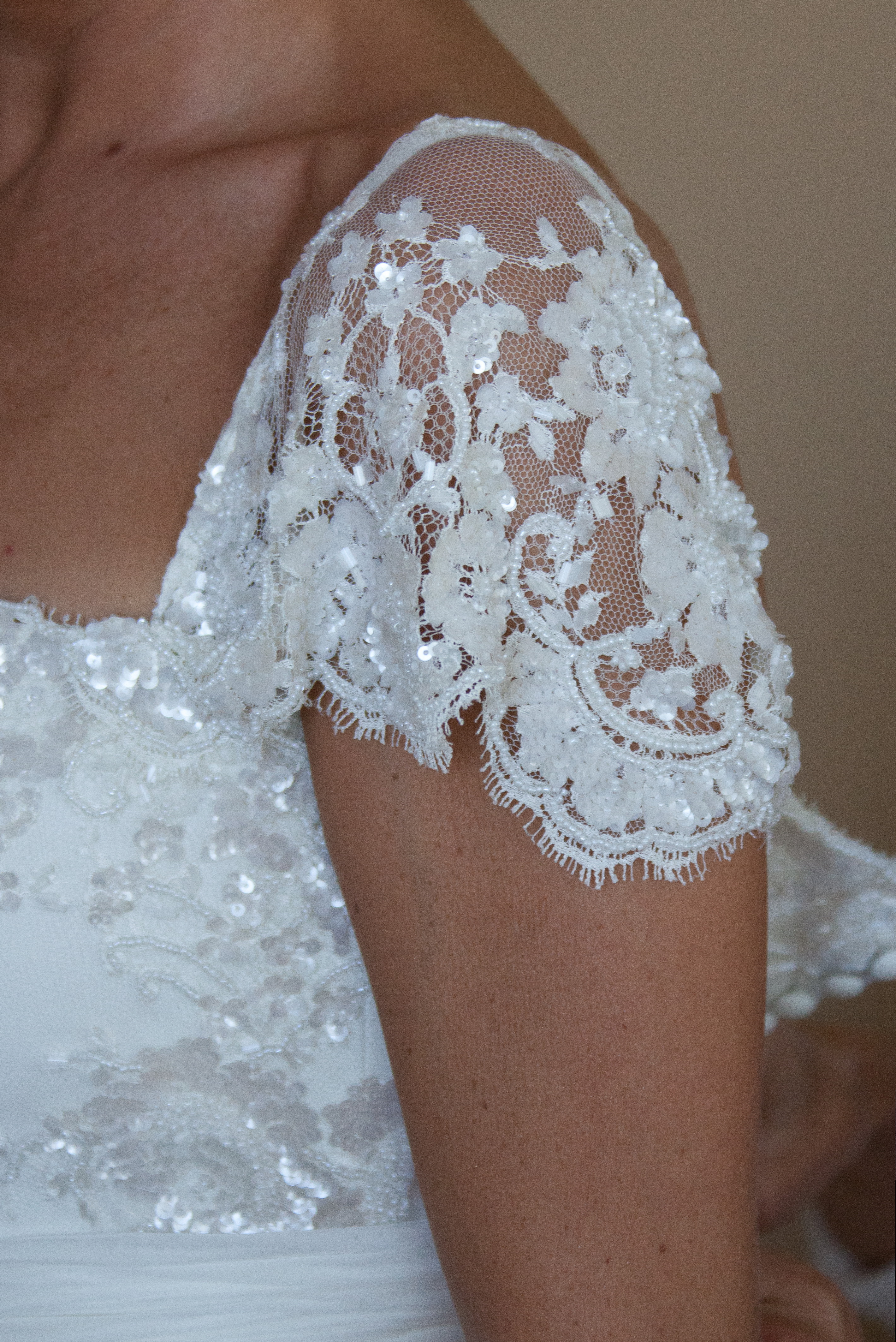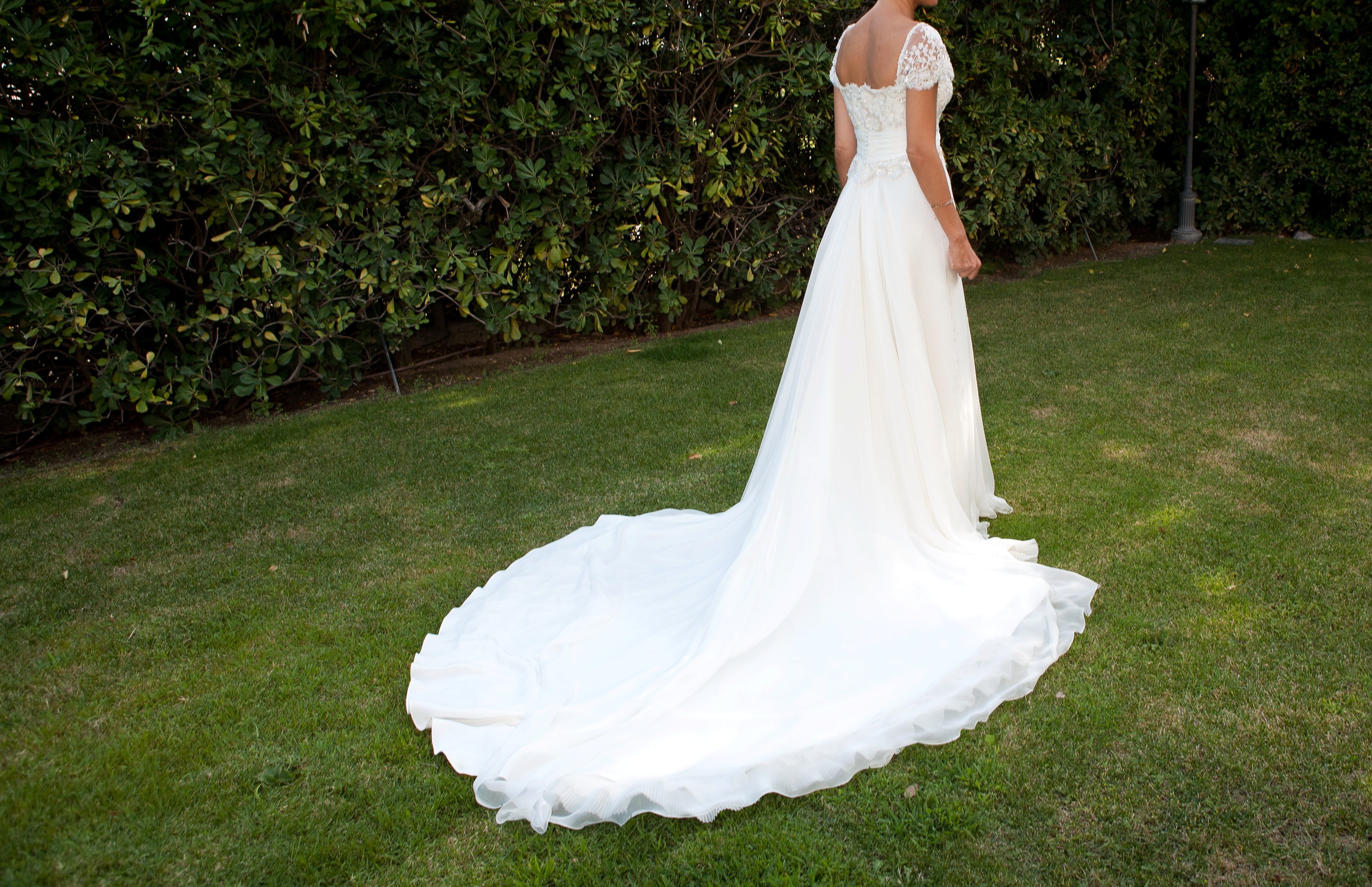 VESTIDO ROMANTICO, CUERPO DE ENCANJE Y FALDA Y FAJIN DE MUSELINA. VELO DE TUL DE SEDA MARAVILLOSO.