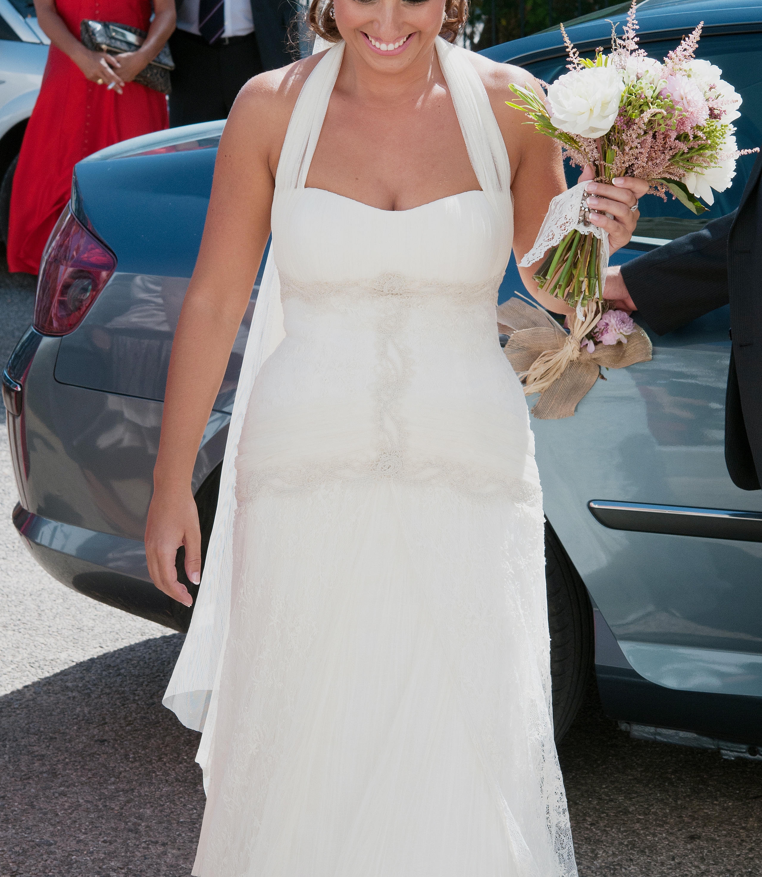 Os regalo el velo que es muy bonito y tiene el mismo tono y color que el vestido.