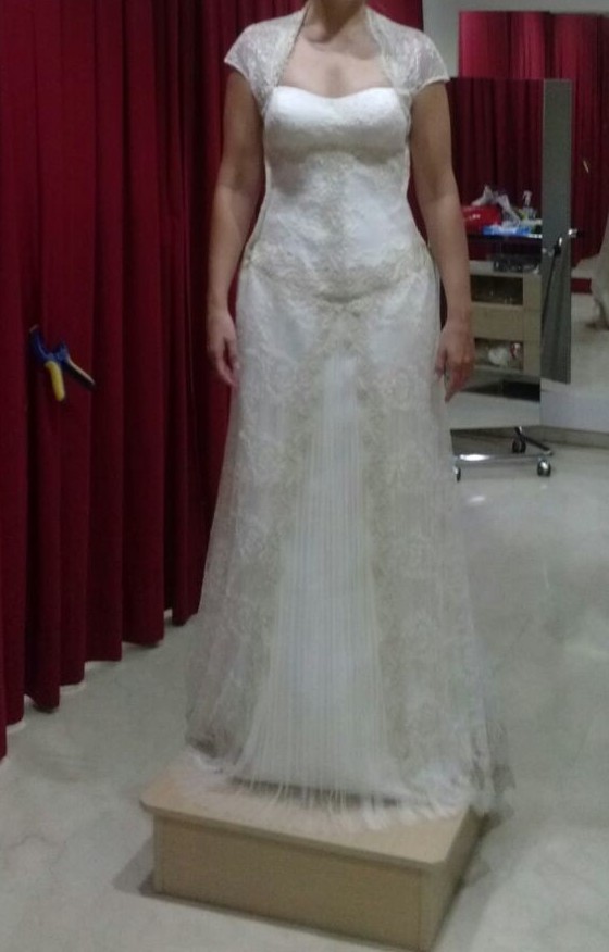 1. 600euros. (Yo lo compré por 2. 599) Se puede probar en Zaragoza. Talla 38/40. Medidas: altura 1, 73cm, pecho: 90cm, cintura: 70cm, caderas: 100cm