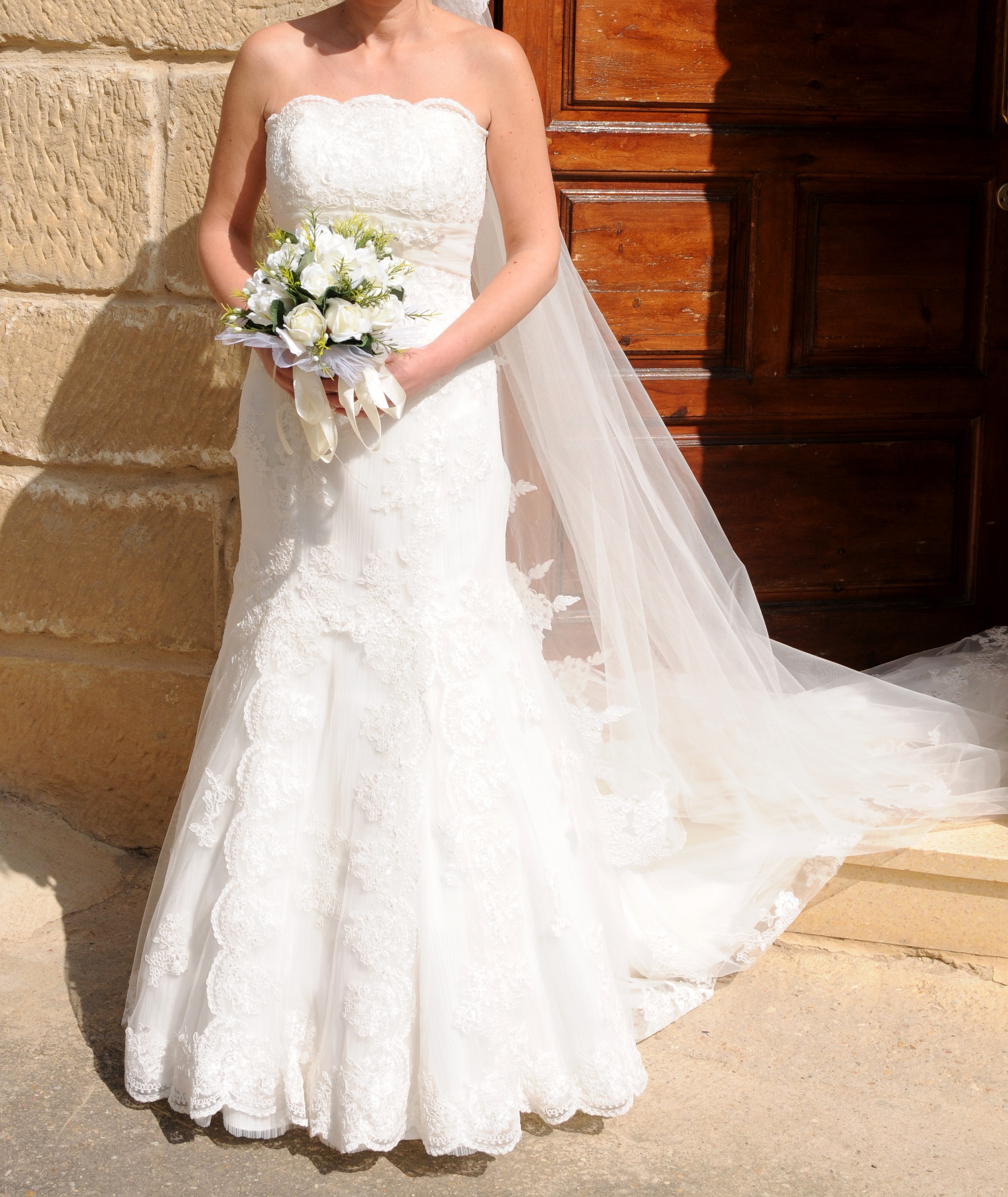 Está perfecto, lo llevé a la tintorería. Comprado en tienda de novias en Logroño (La Rioja).