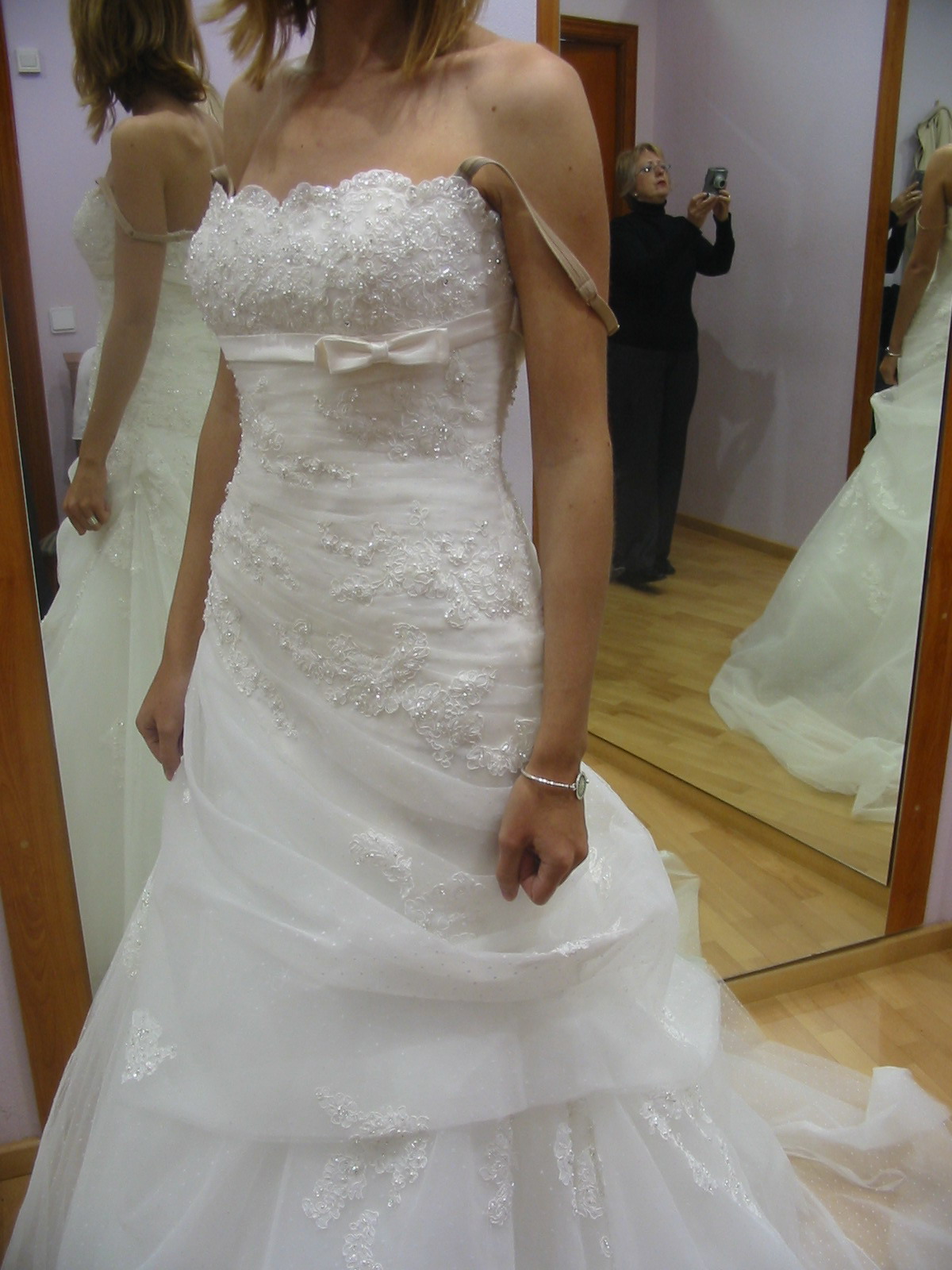 El vestido es el modelo Mecenas de la marca La Sposa,está practicamente nuevo e incluyo el velo.La talla es la 38 y mi estatura es 1,72 (se podria hacer arreglo si medis menos)