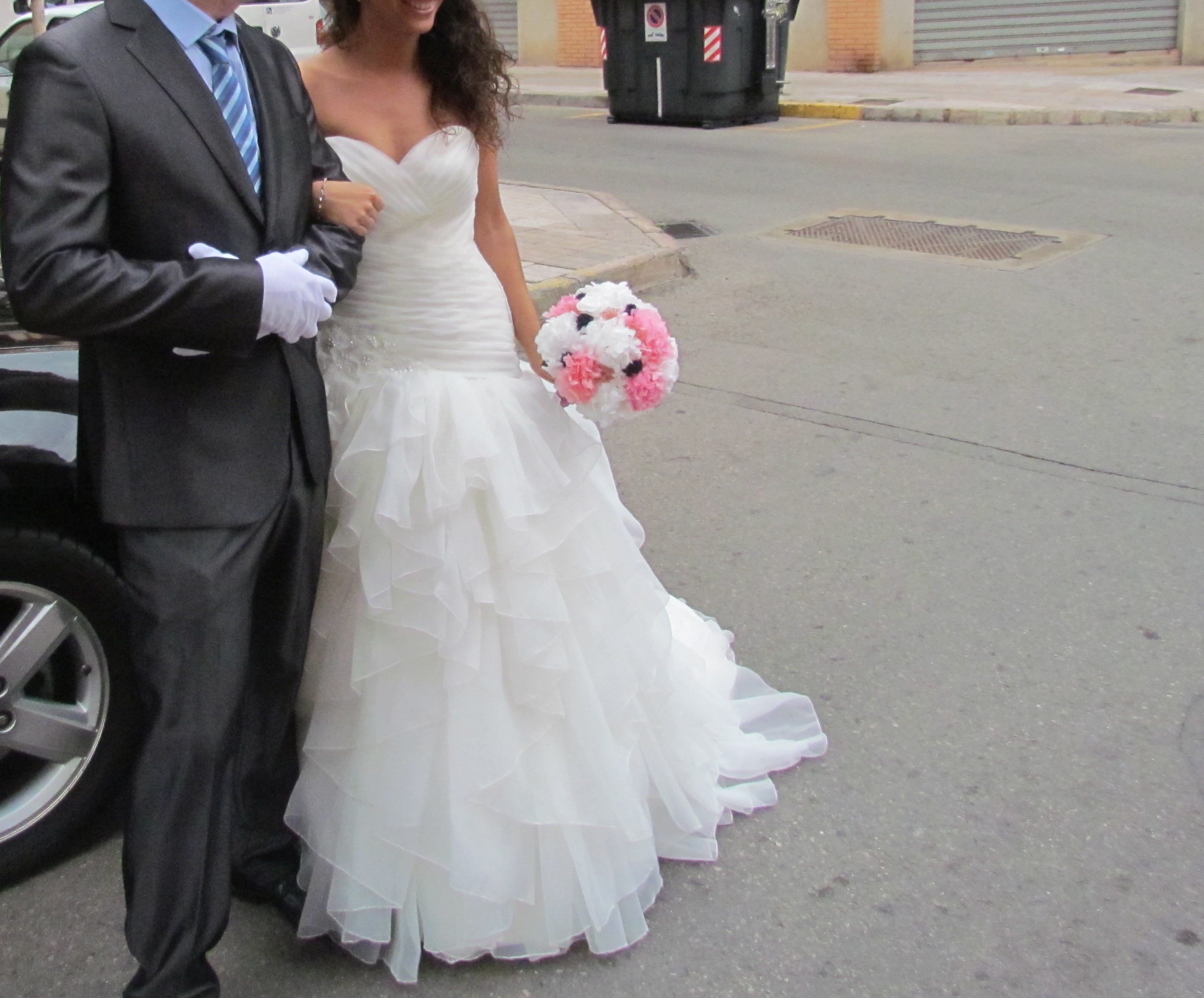 vestido de novia LINA de luna novias(2ºmarca de rosa clara) talla 38-40) con escote de corazon y un poco de push-up, muy comodo de llevar,no se arruga. Se regala el cancan, utilizado en octubre del 2015, en perfecto estado,solo falta llevarlo a la tintoreria.Detalle en la cadera de unas florecitas con brillantitos.Costo 1500.pruebatelo sin compromiso.negociables